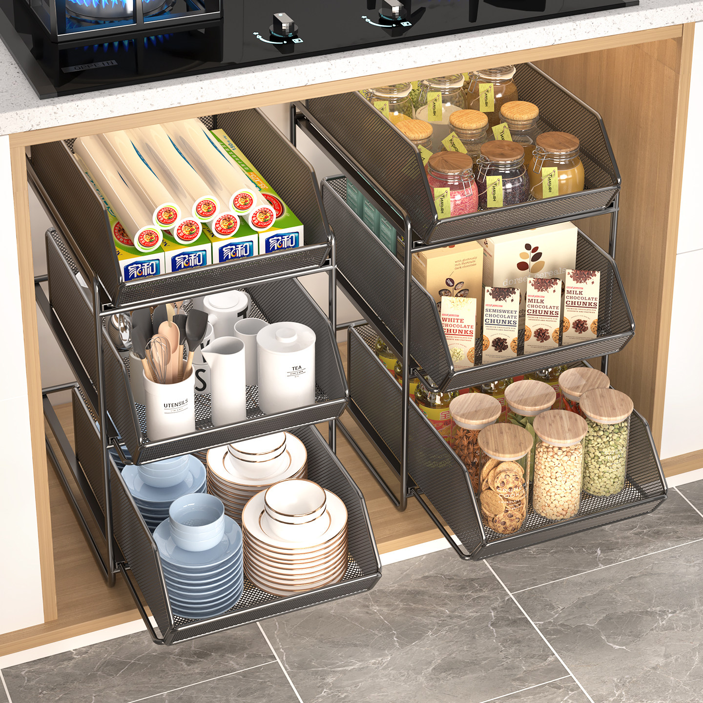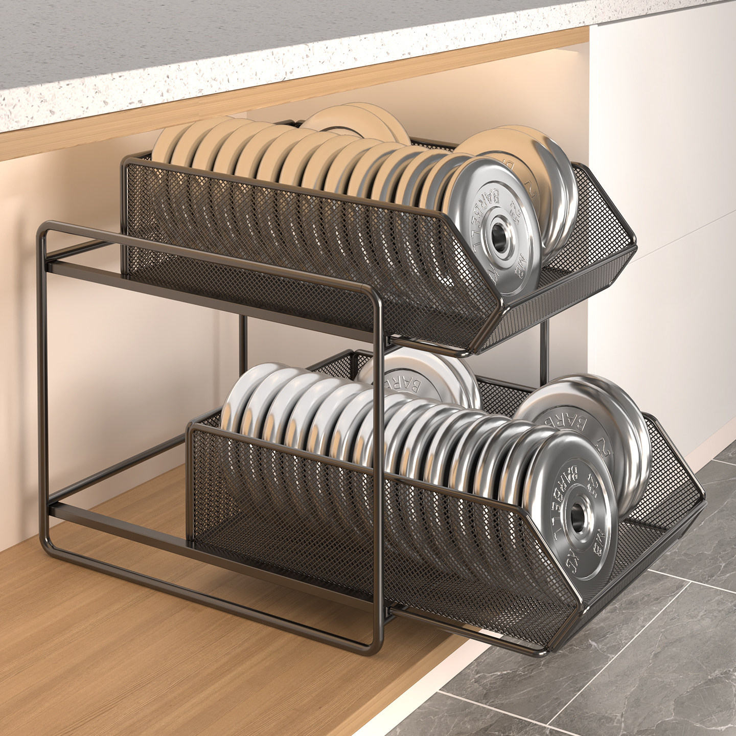 厨房抽拉式置物架橱柜内分层架子多层下水槽多功能抽屉篮收纳神器