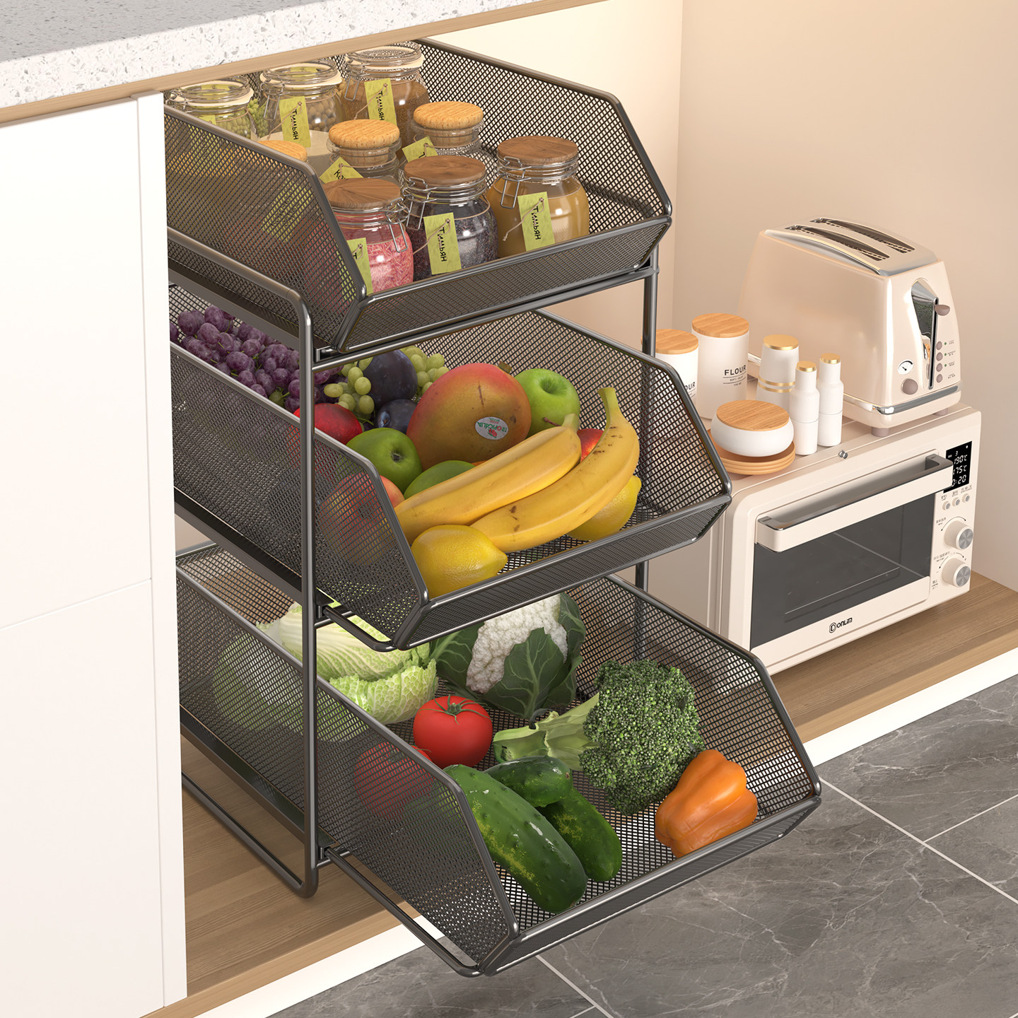 厨房抽拉式置物架橱柜内分层架
