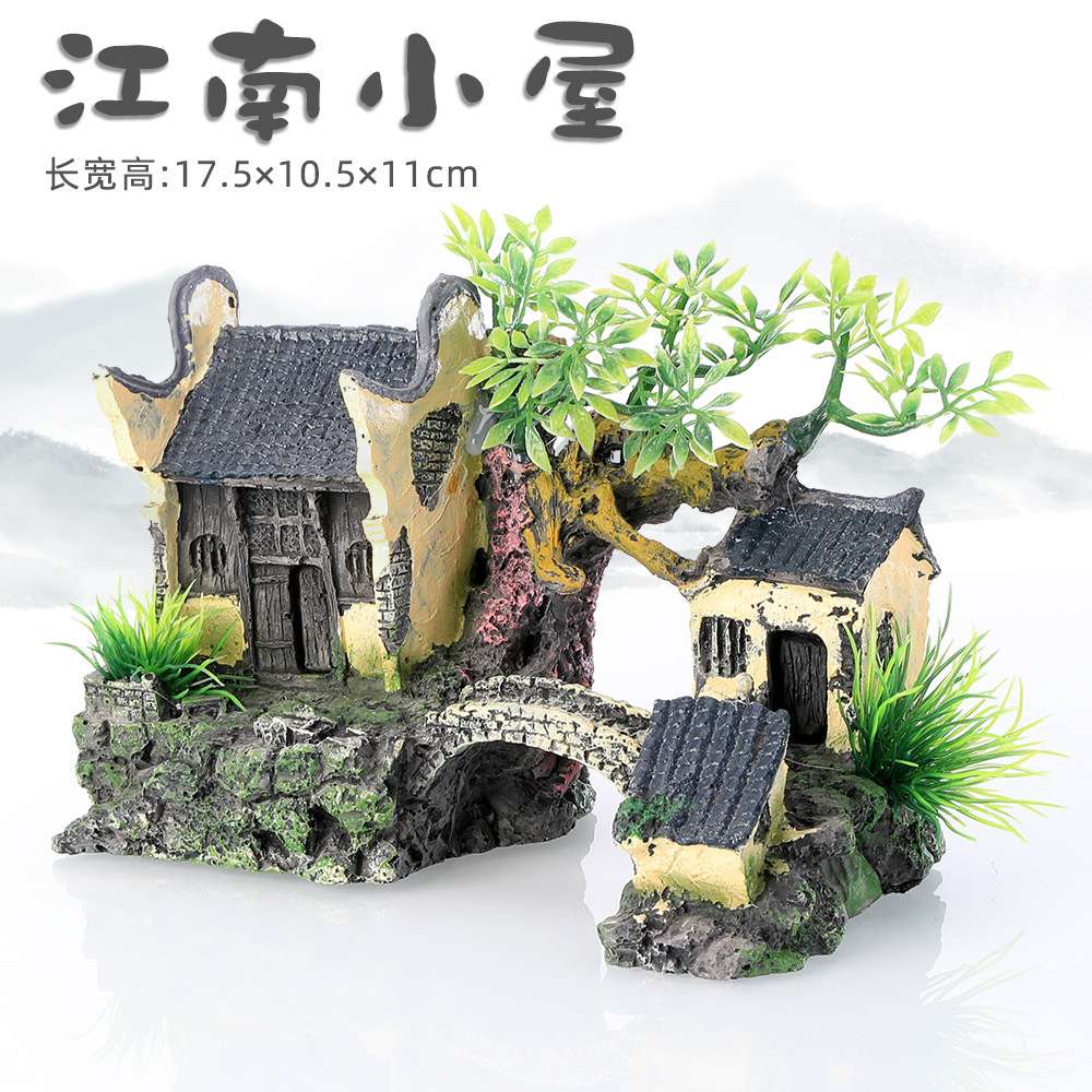 鱼缸装饰水族箱造景树脂工艺品房子假山摆件江南小屋水乡云鹤楼