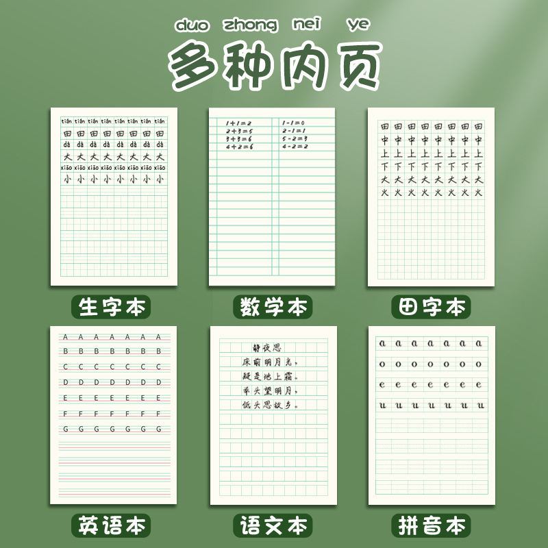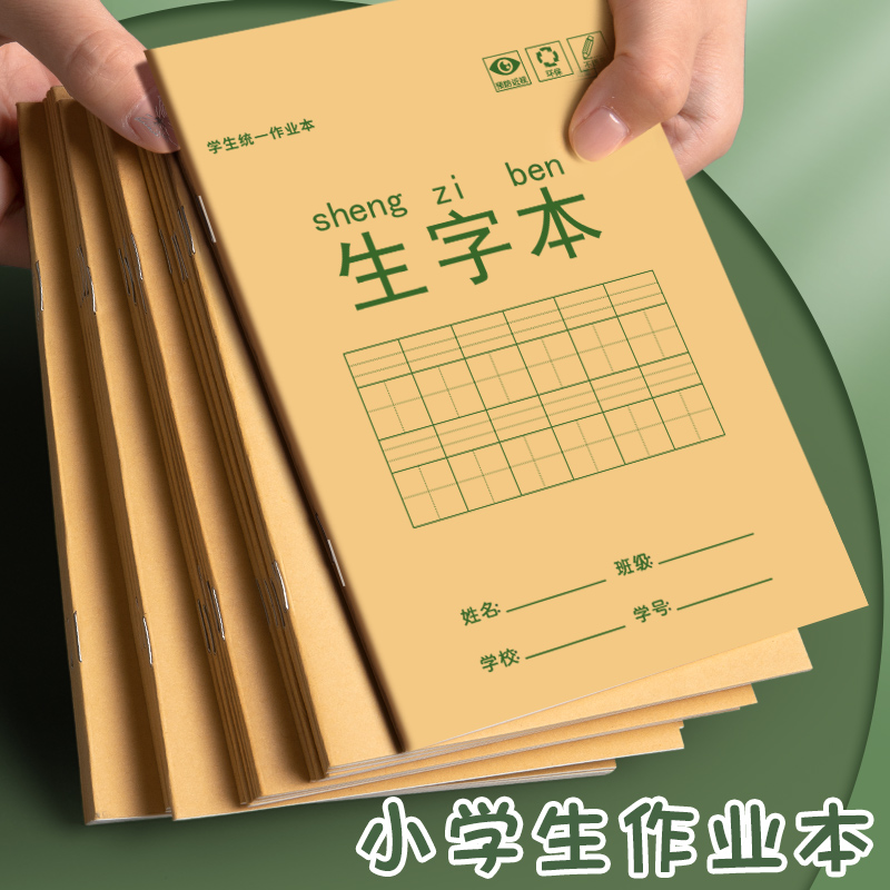 小学生作业本生字本拼音本子田字格英语数学语文1一二年级下册练习本幼儿园写字本米黄护眼纸张学习文具批发