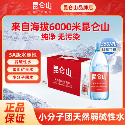 昆仑山雪山矿泉水350ml*12瓶弱碱性水矿物质饮用水泡茶健身高端水