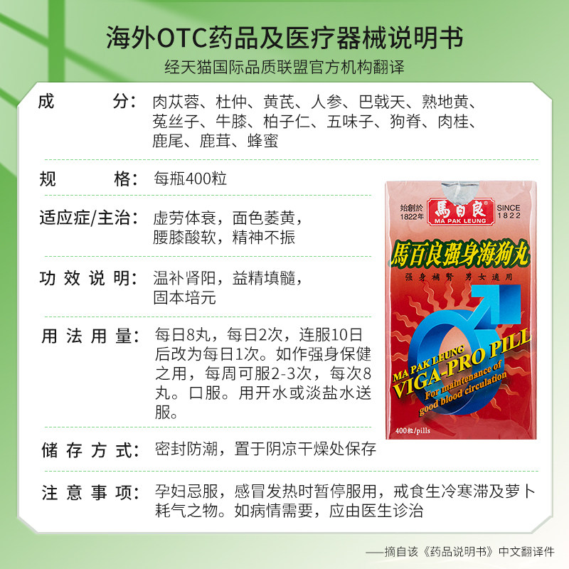 香港进口马百良强身海狗丸补肾益精男士锁阳肾阳虚壮腰男性补肾丸