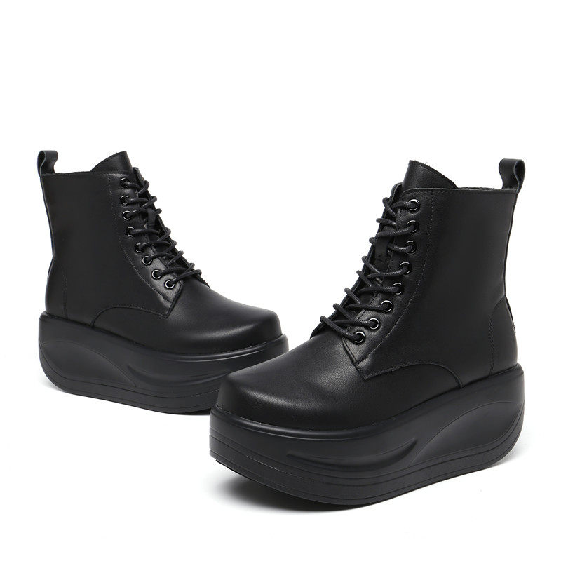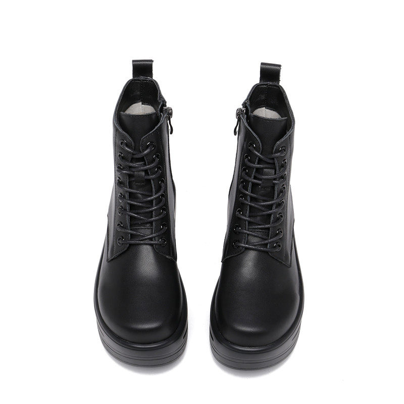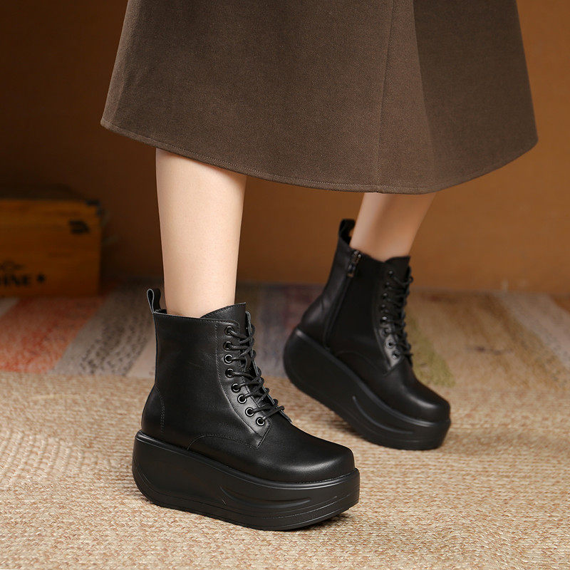 2025冬季新款马丁靴松糕厚底增高女靴子中筒百搭粗跟圆头真皮女鞋