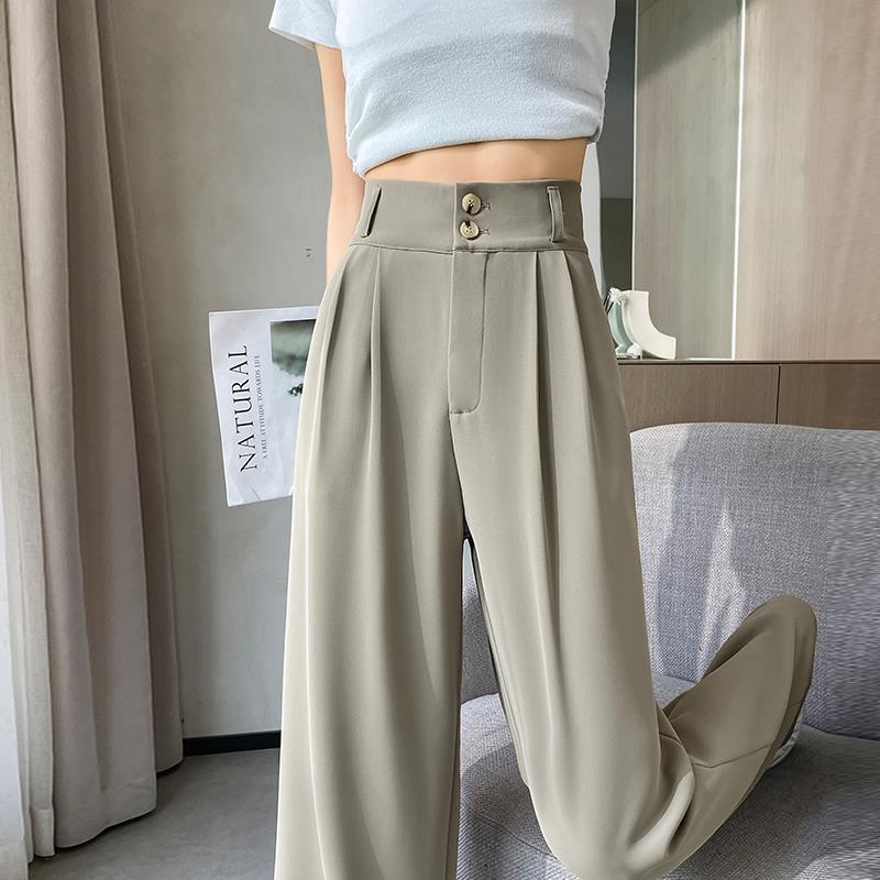 爆款冰丝阔腿裤女夏季薄款高腰显瘦休闲窄版直筒西装裤高级感垂感
