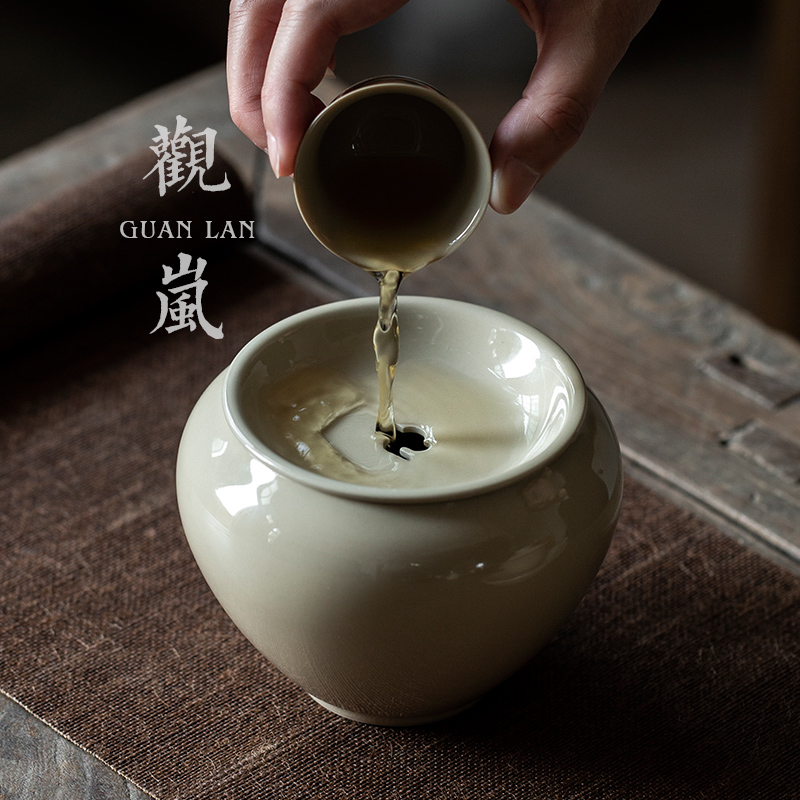 草木灰建水水孟茶渣斗中式家用水洗茶碗茶渣桶零配件茶艺陶瓷茶洗