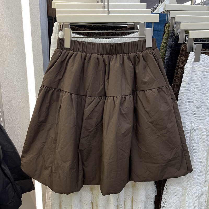 韩系灰色夹棉高腰显瘦蓬蓬半身裙女2025秋冬新款时尚百搭花苞伞裙
