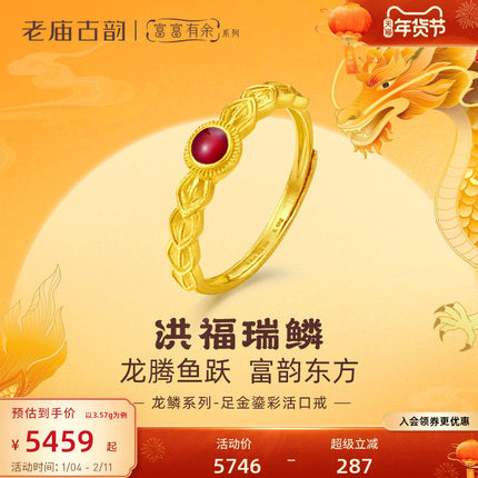 老庙富富有余红鎏彩龙鳞戒指