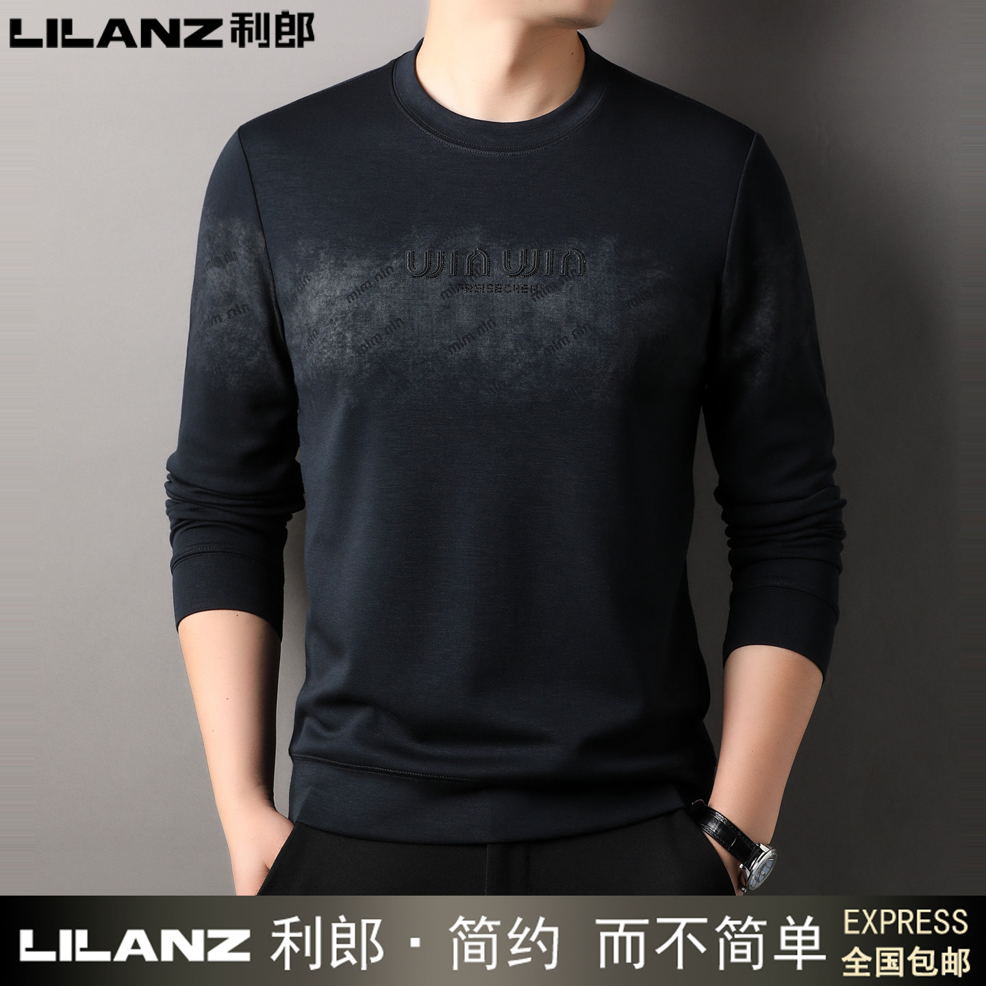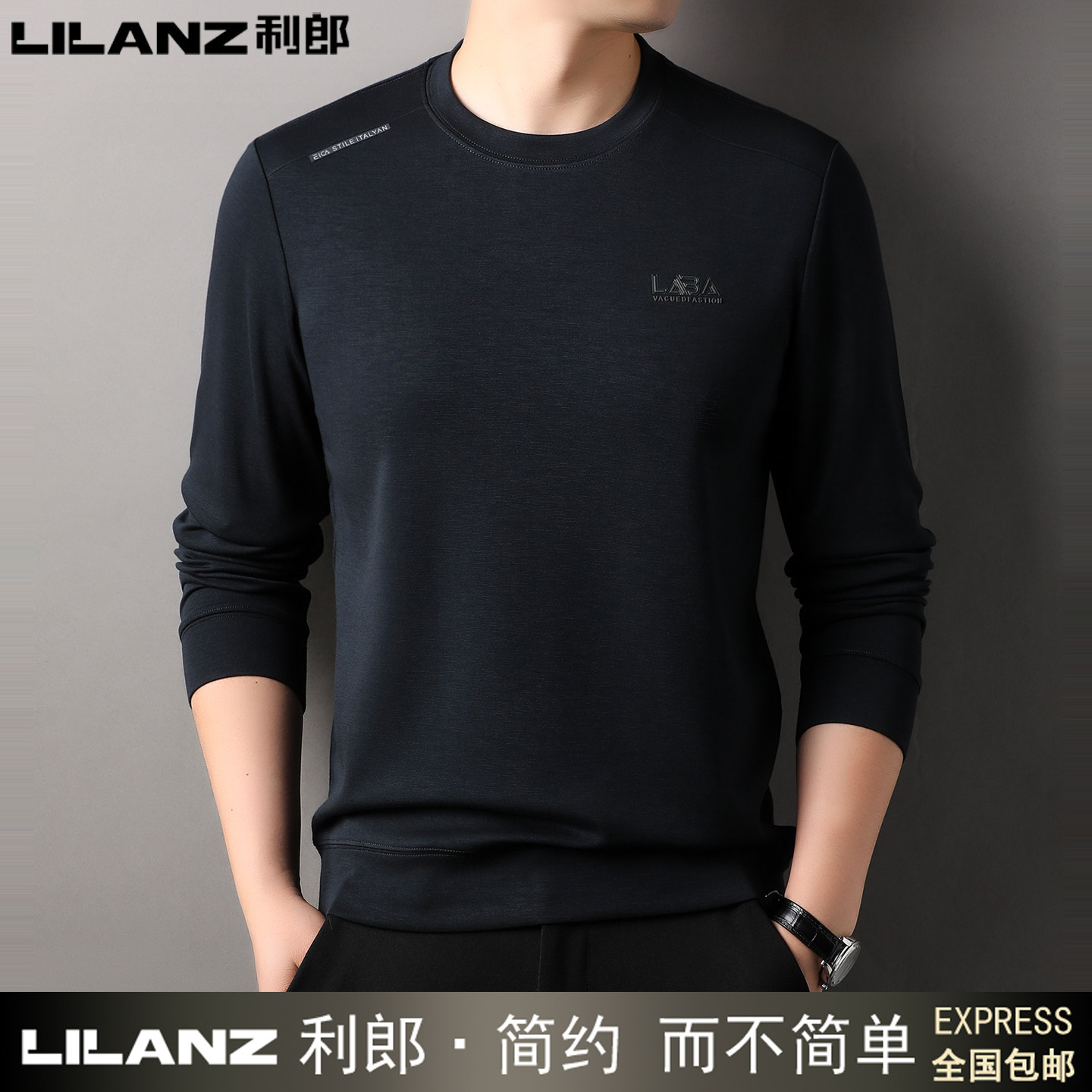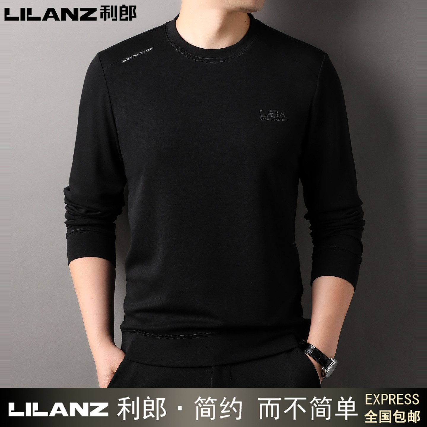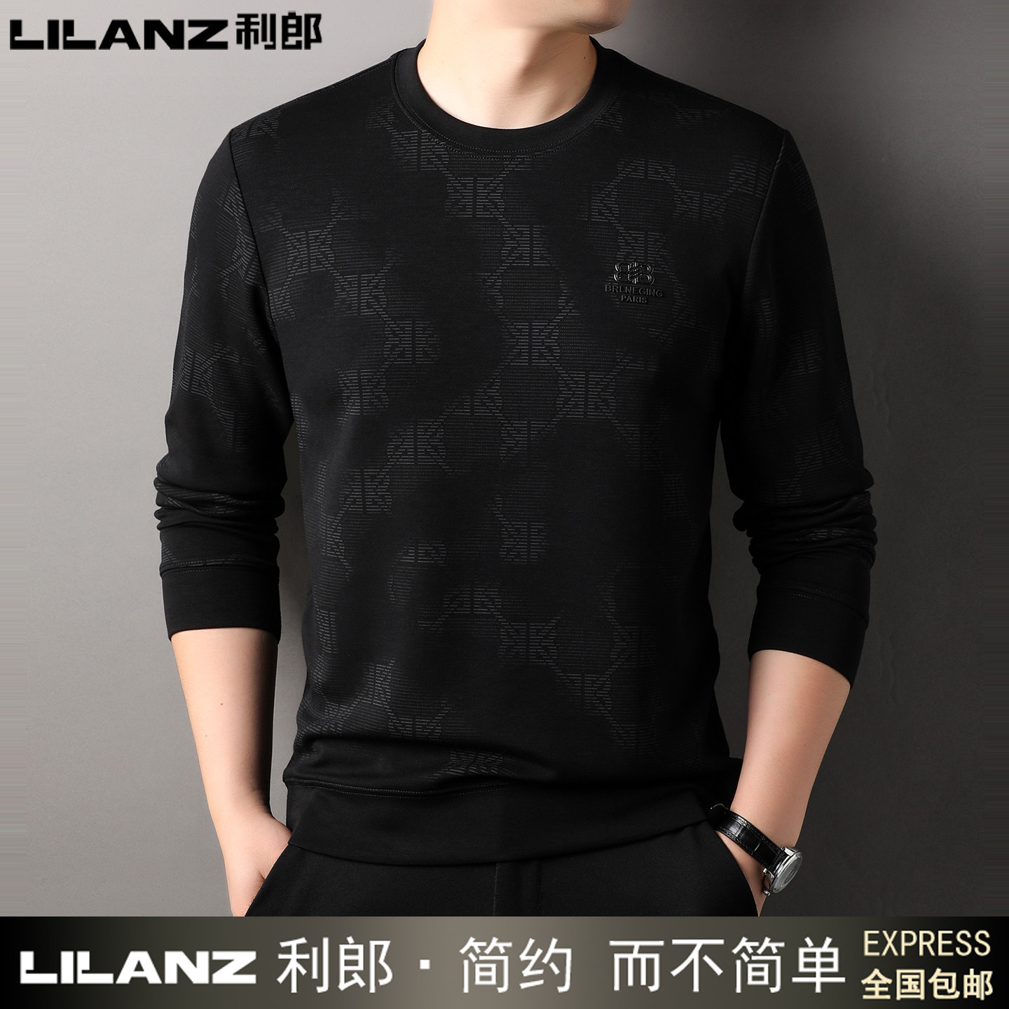 利郎男士长袖T恤圆领卫衣纯棉