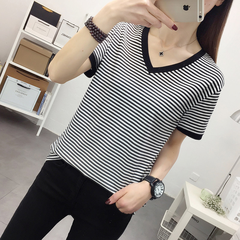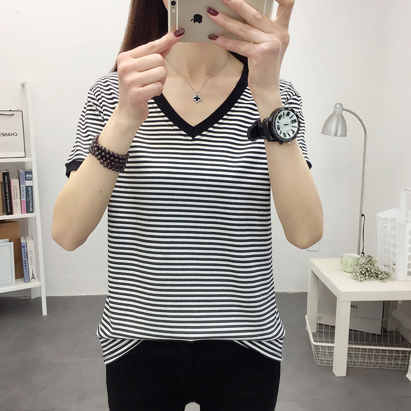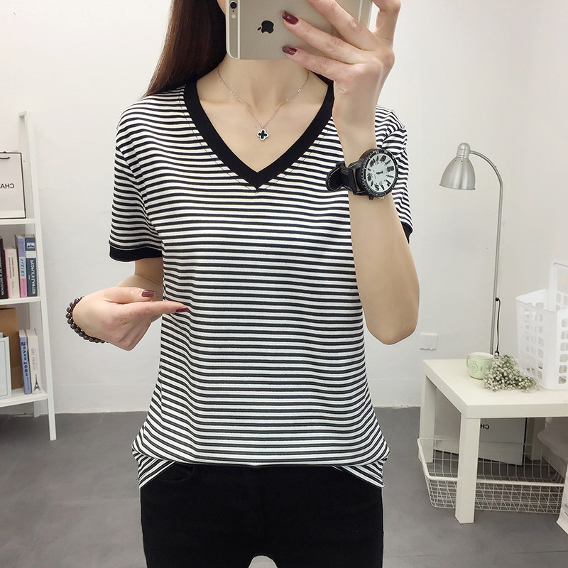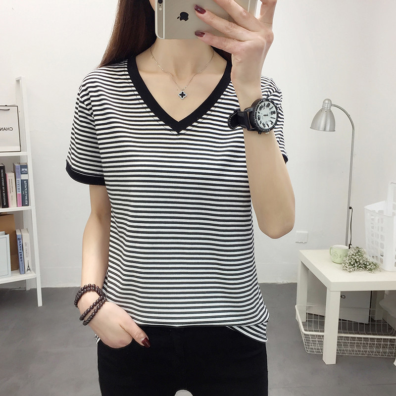 夏装2025年新款短袖半袖女士条纹上衣时尚洋气纯棉t恤女大码宽松