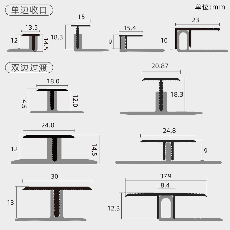 铝合金地板压条T型收边条瓷砖扣条带底座过门压条门槛条窄收边条