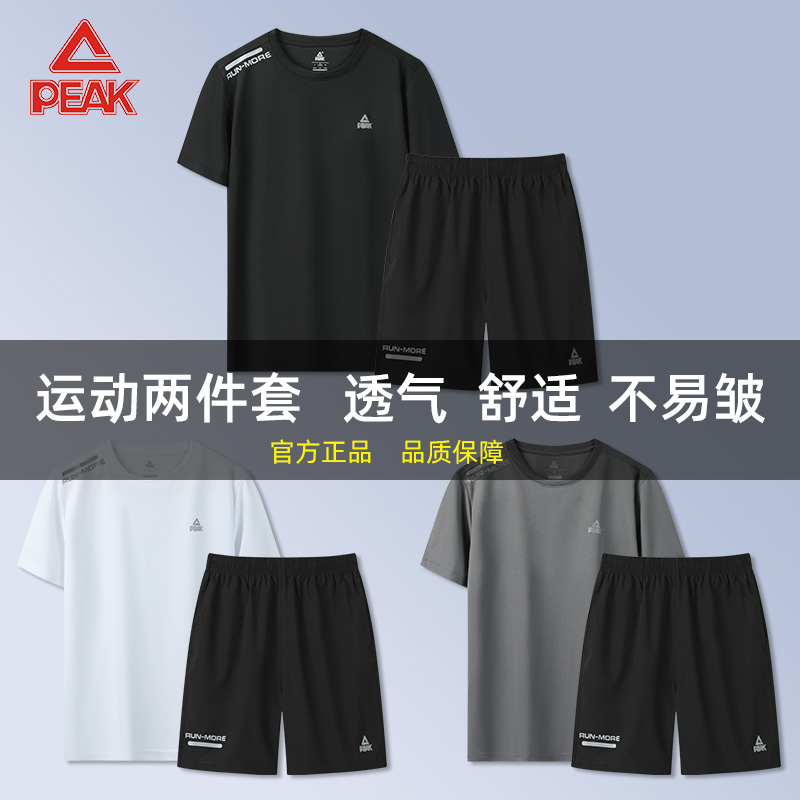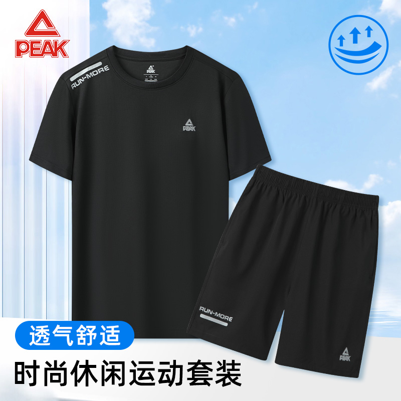 匹克运动套装新款速干宽松健身跑步服休闲装男士短裤短袖两件套