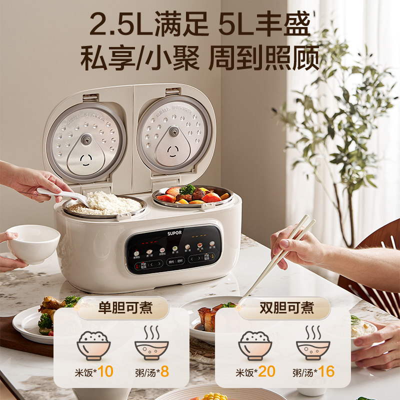 苏泊尔双胆电饭煲家用304无涂层不锈钢双胆多功能智能预约煮饭煲