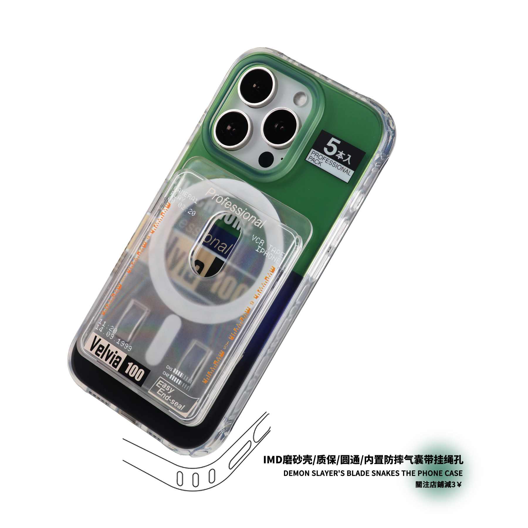 富士胶卷磁吸手机壳适用于苹果17Promax保护套文艺小众磨砂iPhone16Pro防摔情侣胶片相机复古保护壳