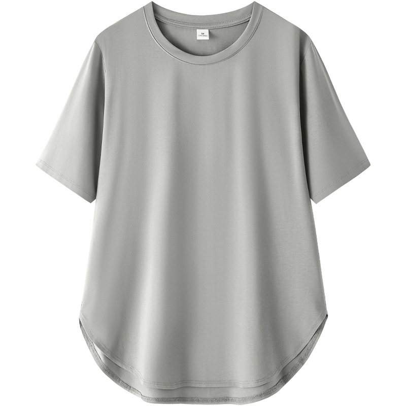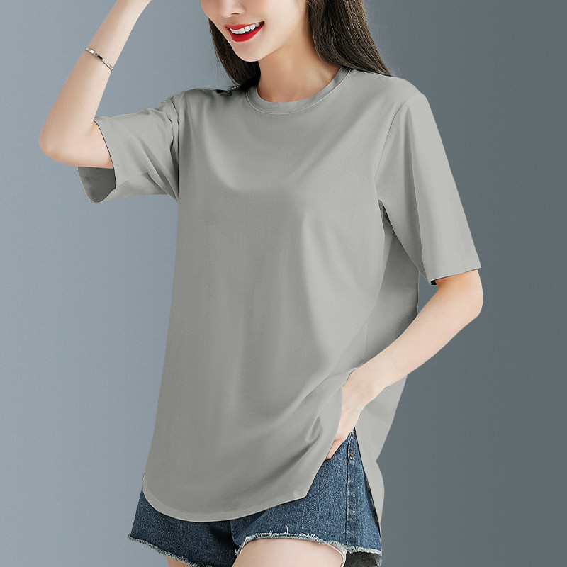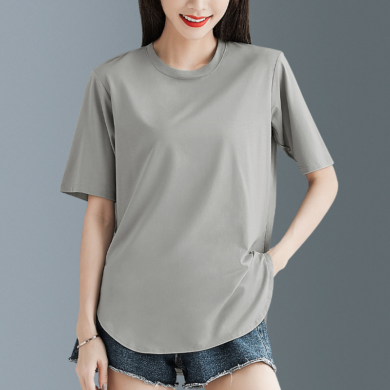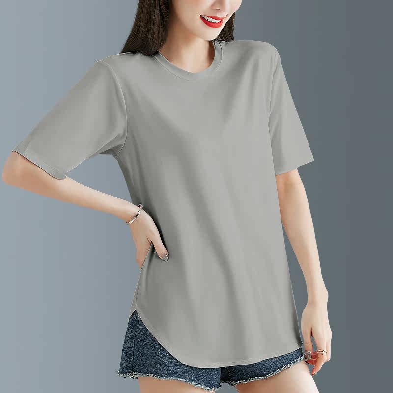 灰色宽松不规则莫代尔棉短袖t恤女夏季新款纯色大码小众体恤上衣