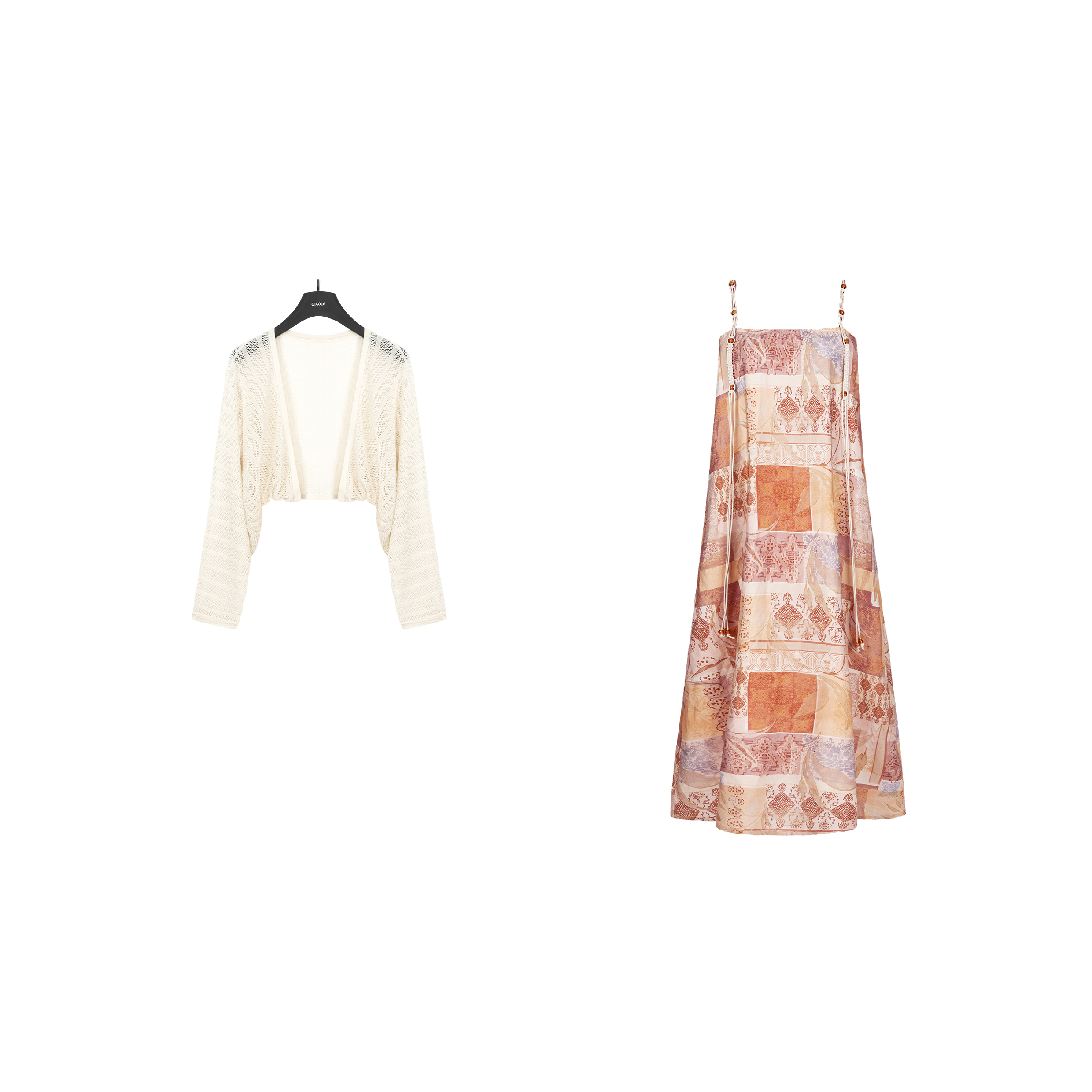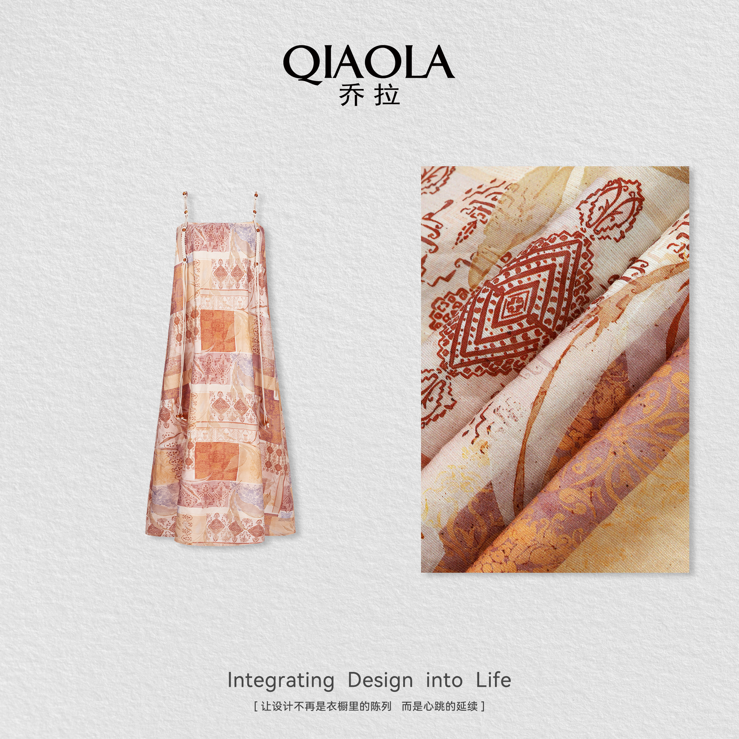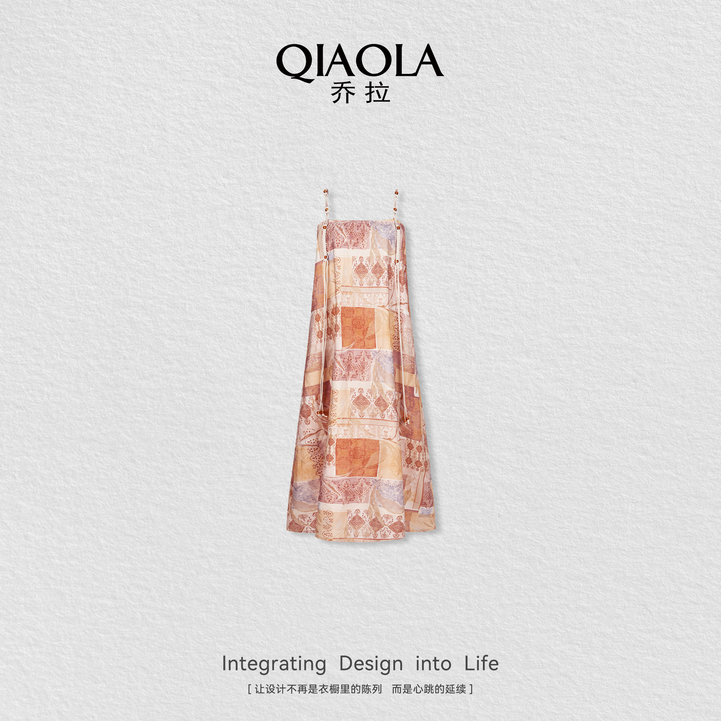 乔拉【边塞光影】夏季新款度假风碎花吊带连衣裙子女针织衫两件套