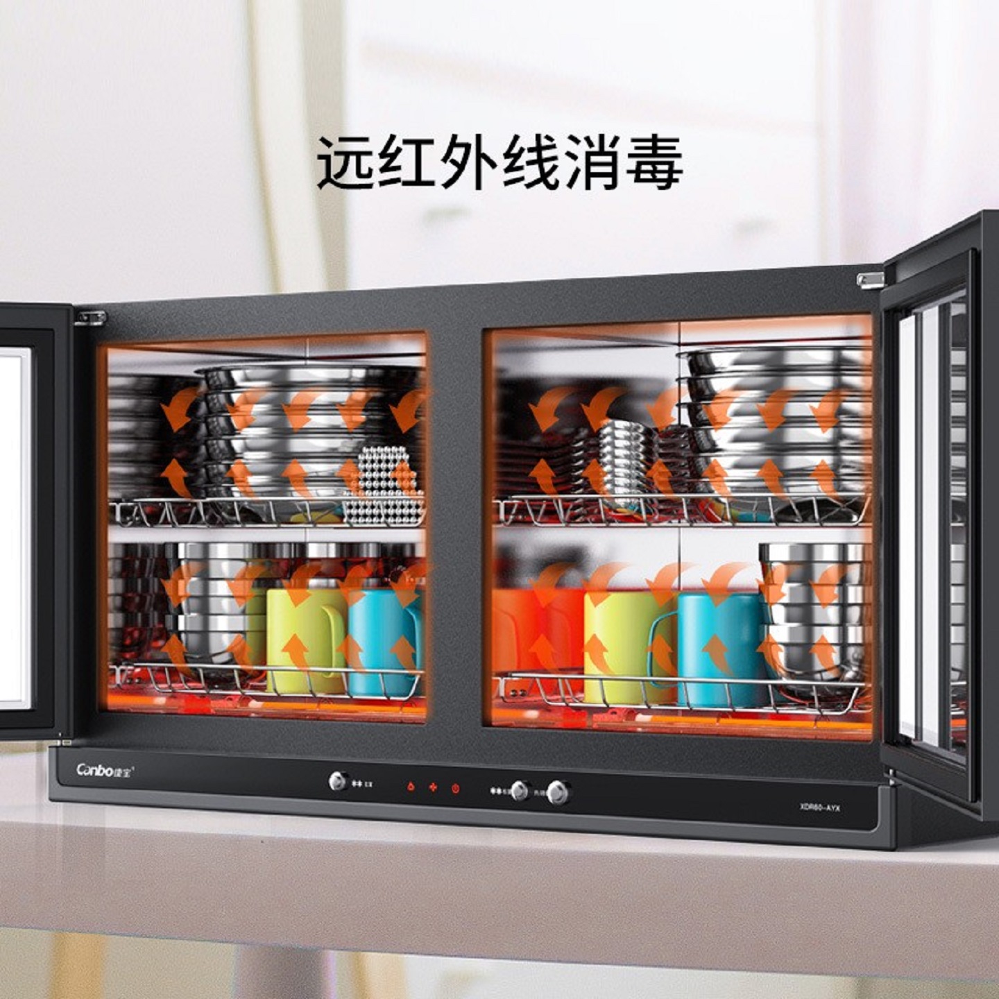 康宝消毒柜60L不锈钢2层商用家用壁挂台式多用途餐具高温分区消毒