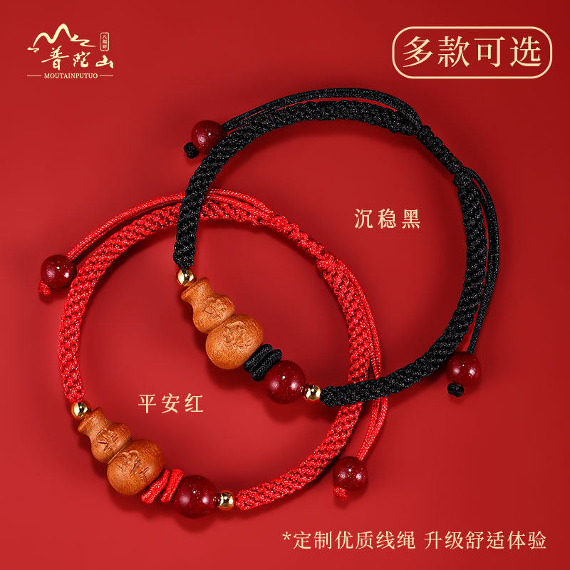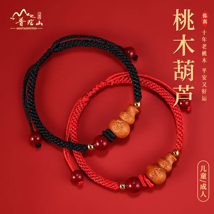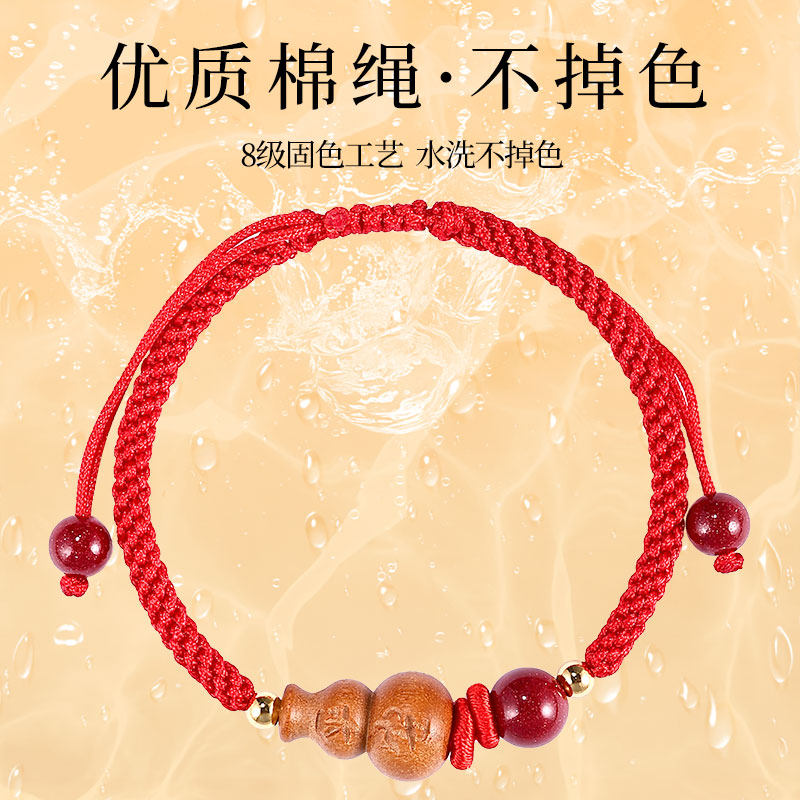2026年天然桃木手链护身符女葫芦朱砂手绳儿童宝宝随身红绳编织绳