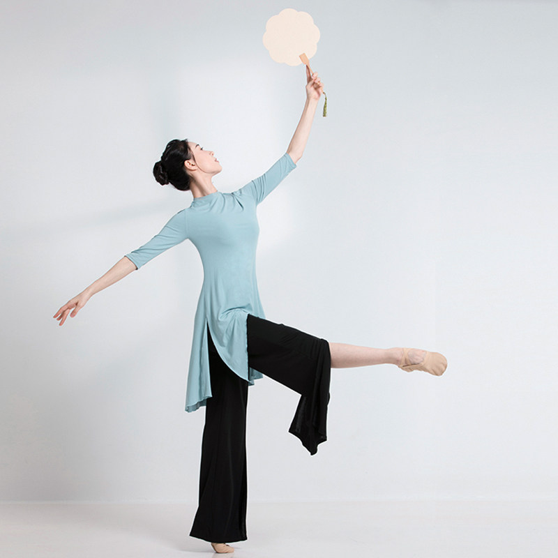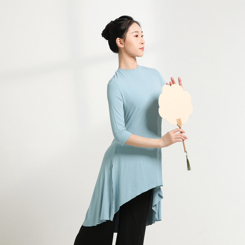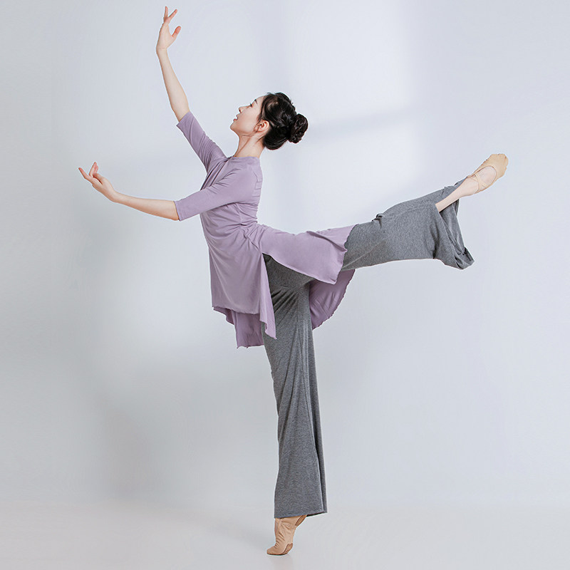 Sansha芭蕾舞服女成人五分袖上衣练功服中长款现代舞古典舞演出服