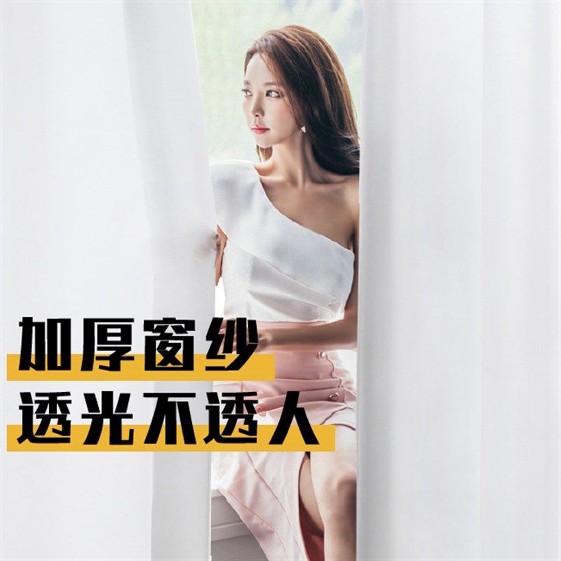 透光不透人纱窗帘纱帘飘窗白纱阳台纱客厅隔断白色布料半遮光窗纱