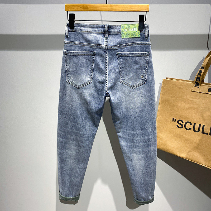 春夏新款牛仔裤薄款青年男士时尚潮流休闲修身小脚百搭九分长裤男