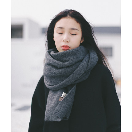 西本针织毛线情侣围巾女冬季ins潮韩版百搭纯色仿羊绒披肩围脖男