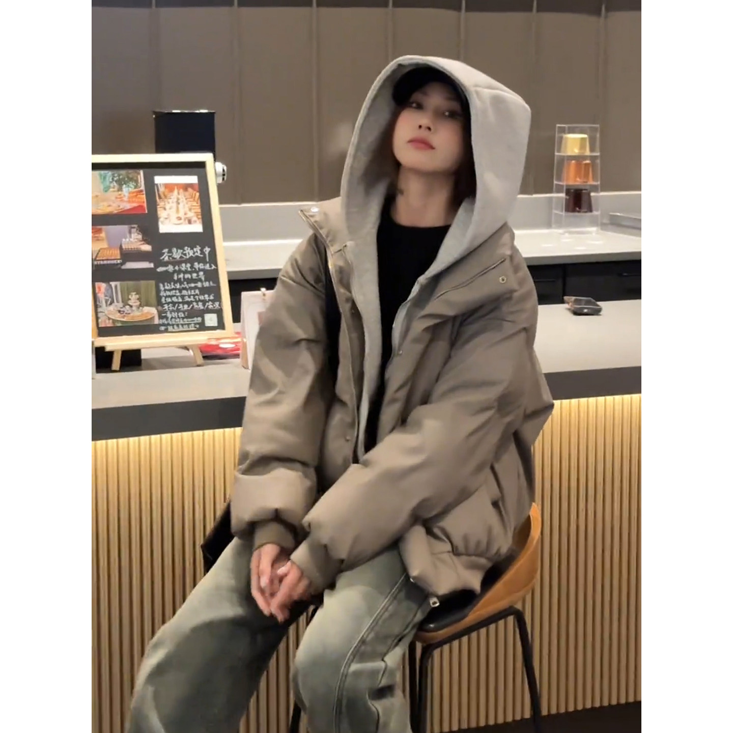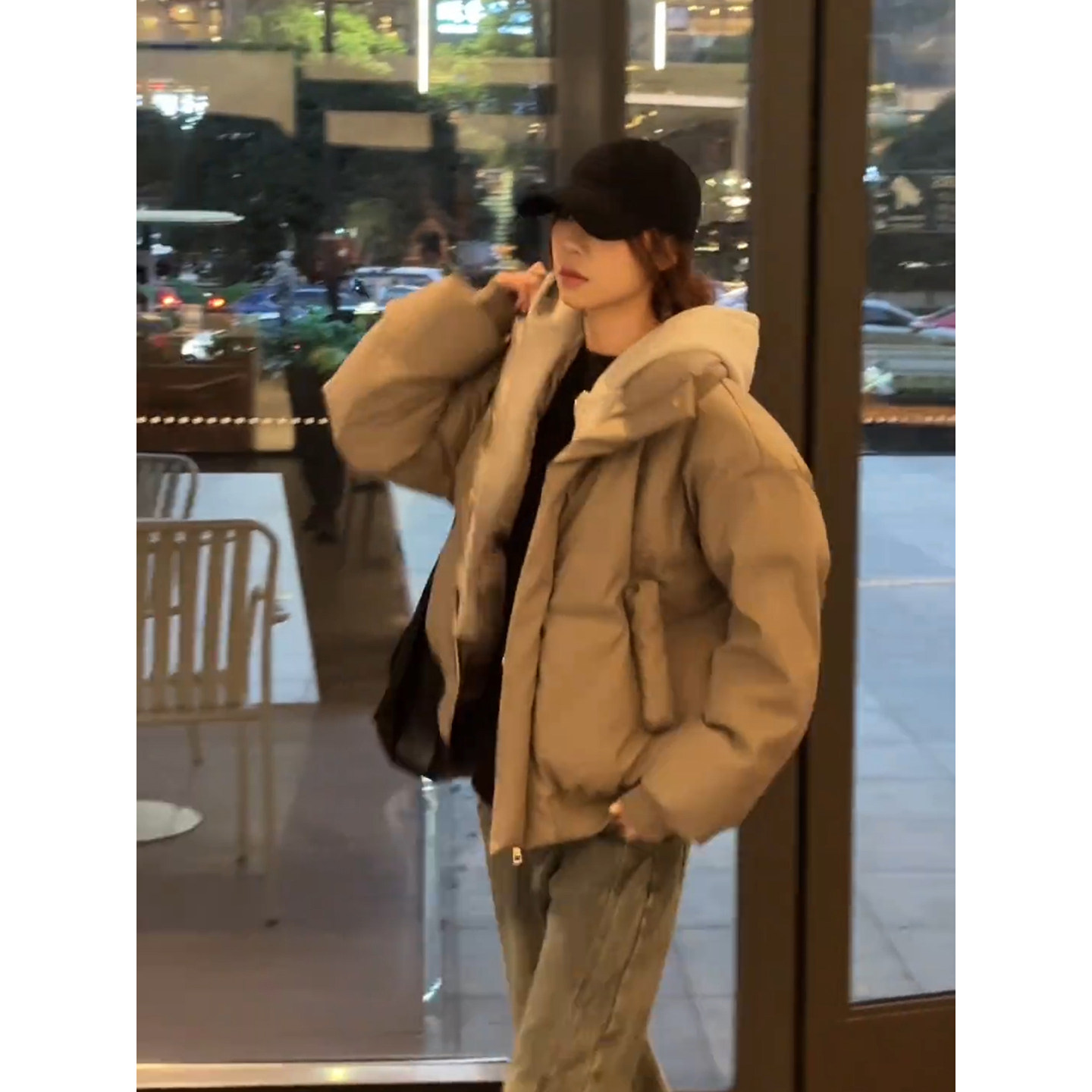 美式假两件连帽pu皮羽绒棉服男女冬季加厚保暖面包服短款情侣棉衣
