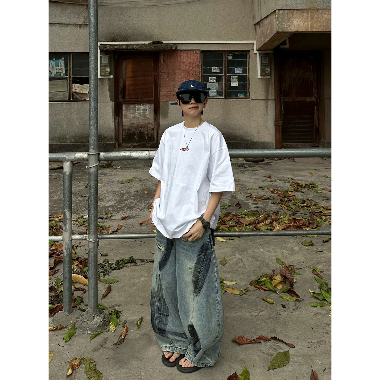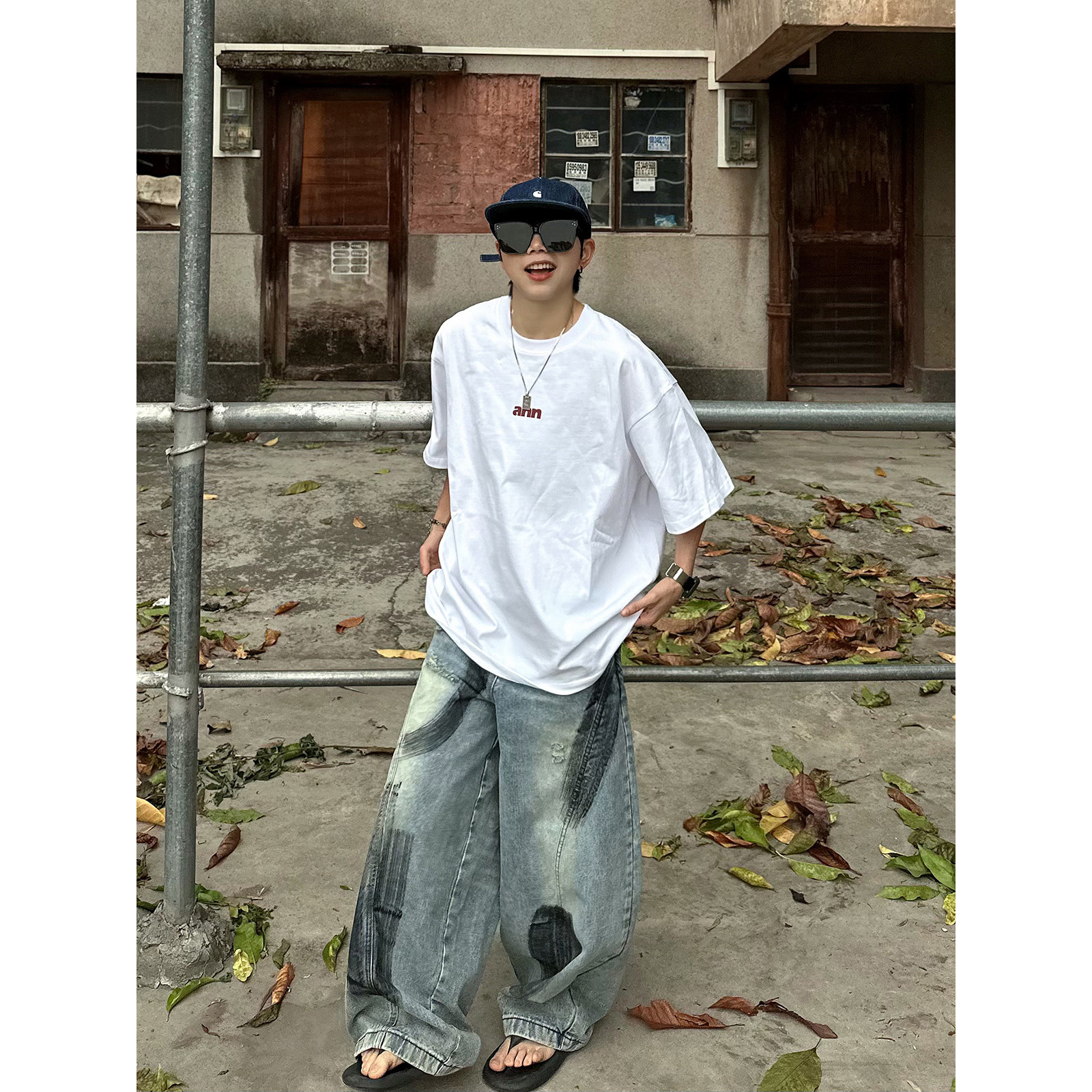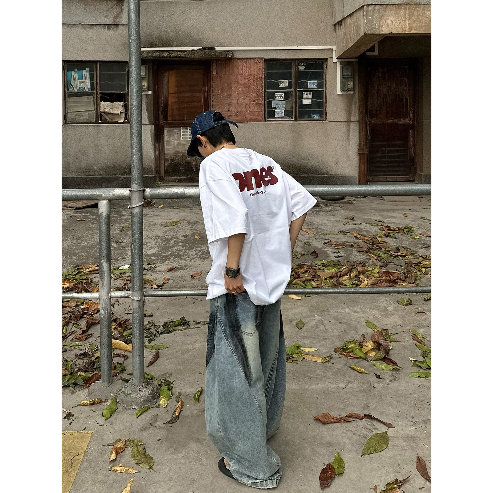 XBRO美式复古夏季后背字母印花宽松五分袖全棉300g重磅短袖t恤bf