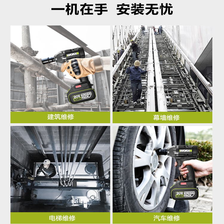 威克士电动扳手WE271架子工锂电手持大扭力无刷风炮冲击扳手WU279