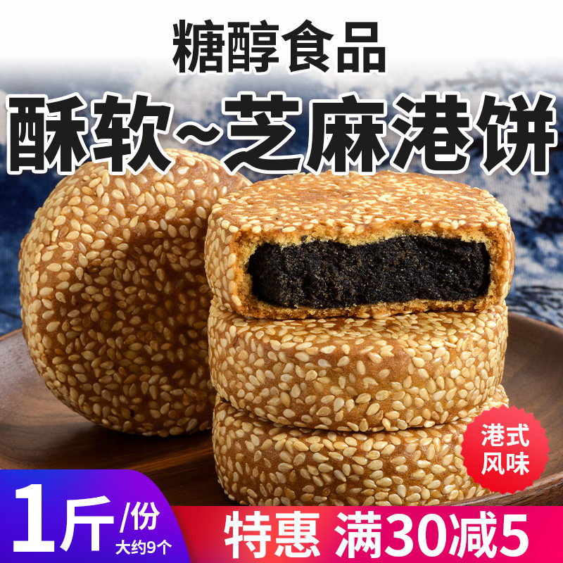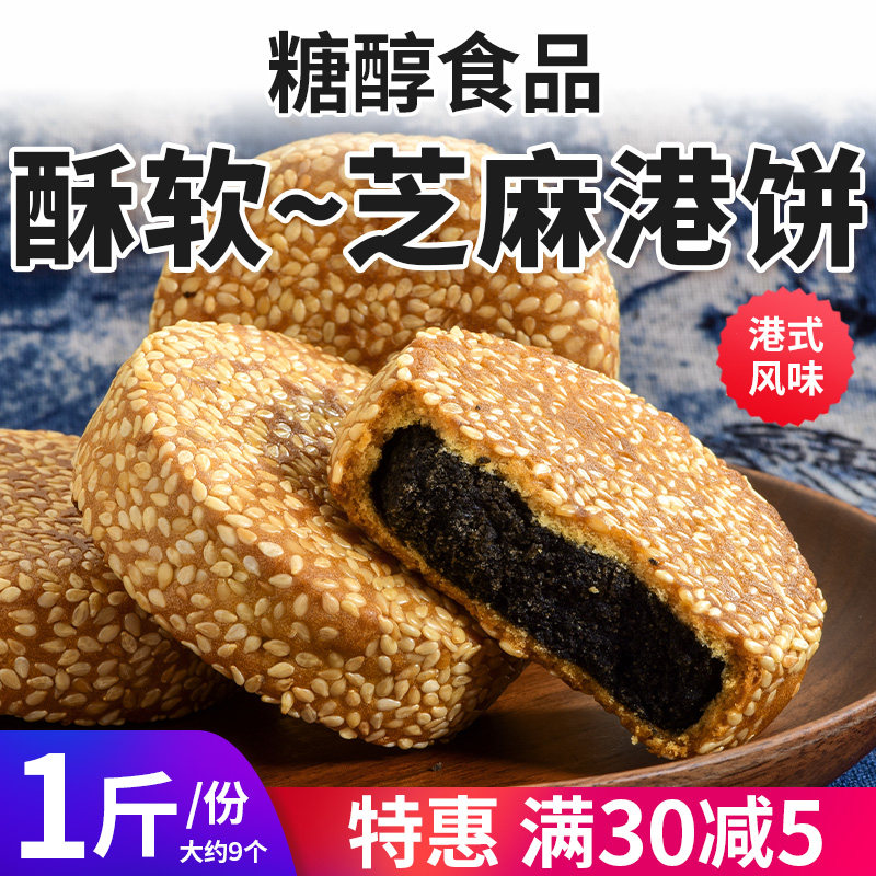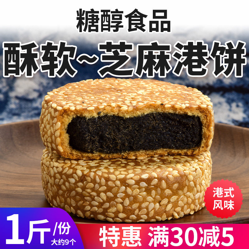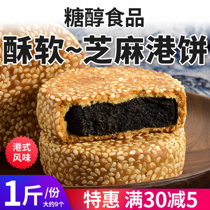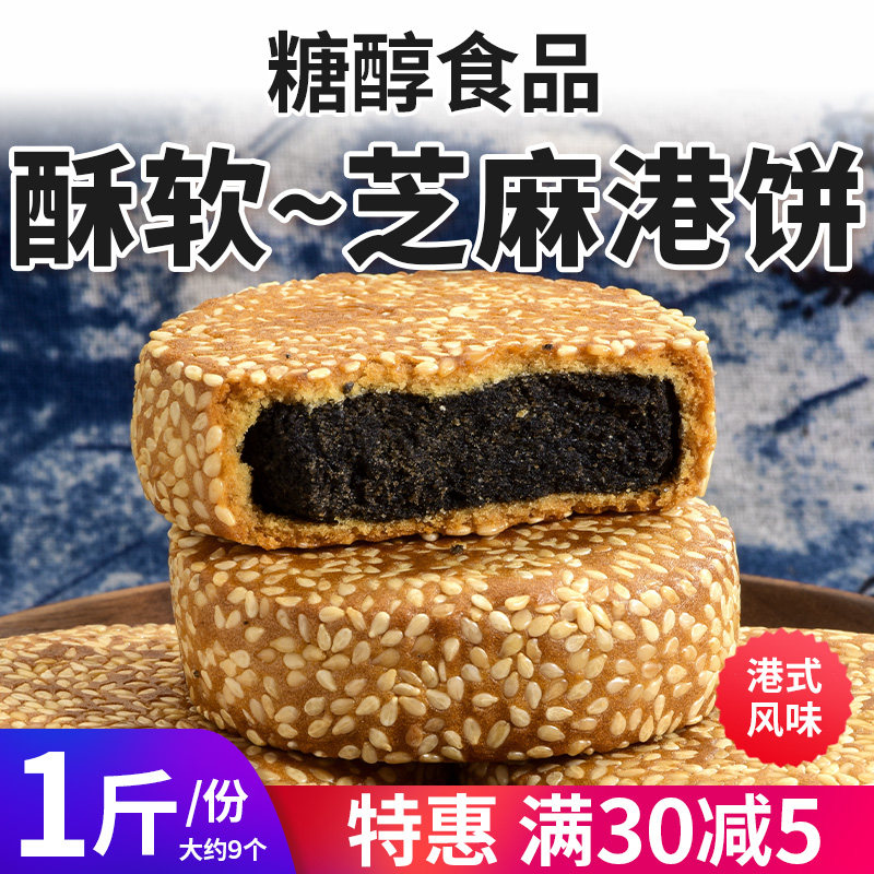 糖醇黑芝麻馅港饼糕点心无糖精尿人老人休闲解馋的零食品散装酥软