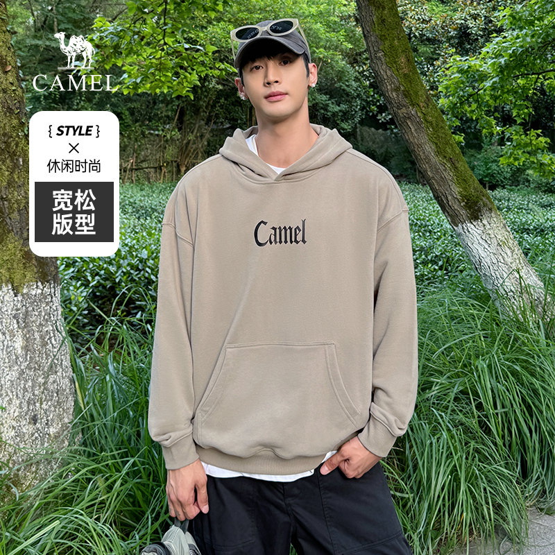 【王俊凯同款】骆驼连帽卫衣男秋冬2025美式潮宽松加绒厚长袖T恤