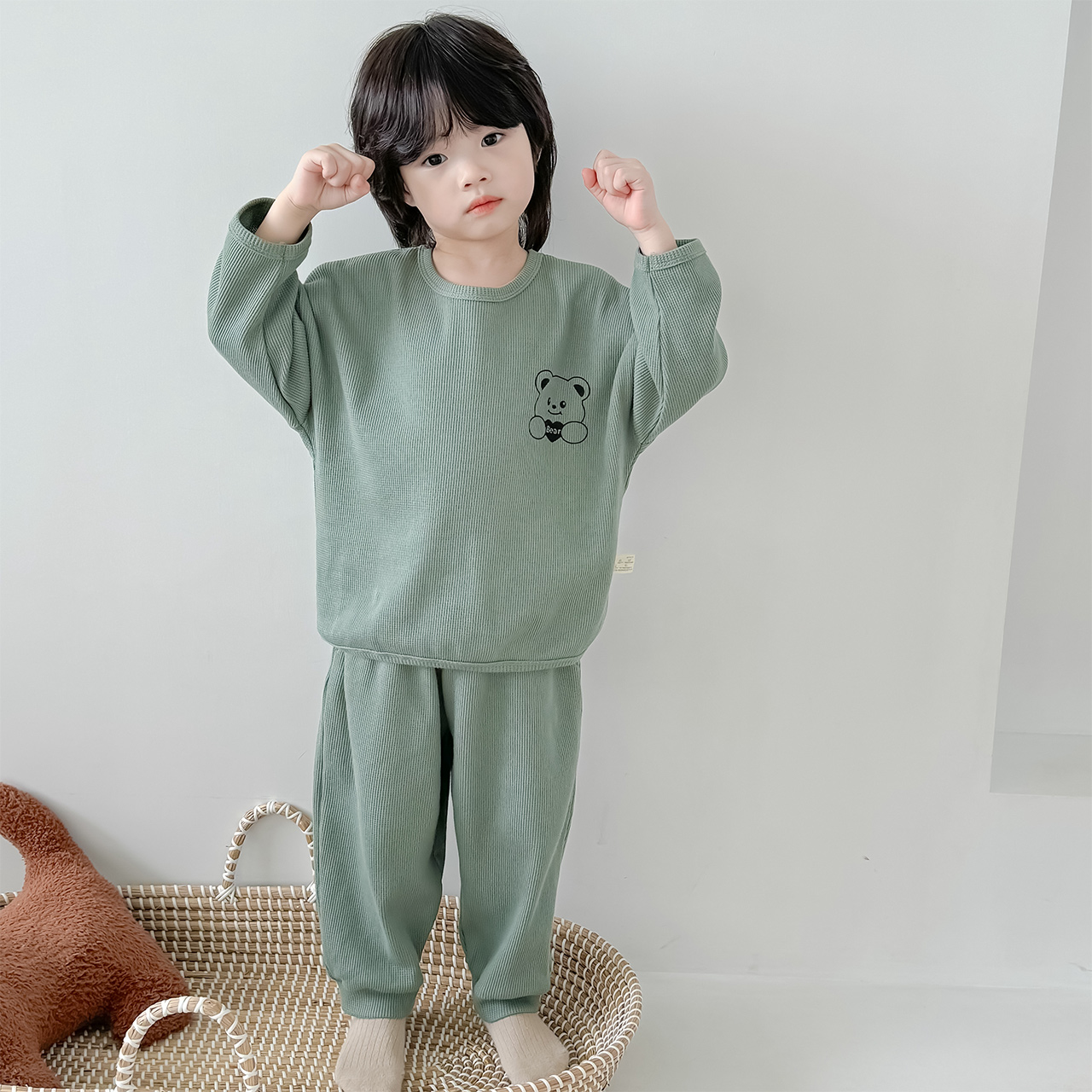 儿童家居服华夫格套装宝宝纯棉长袖长裤男女童春秋款A类睡衣宽松