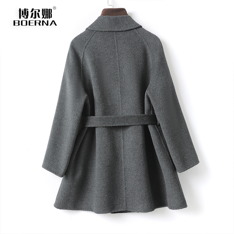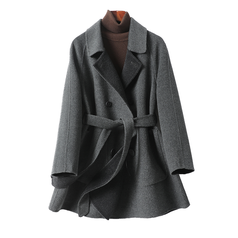 羊绒双面呢大衣中长款系带翻领韩版小个子2025秋冬新款羊毛呢外套