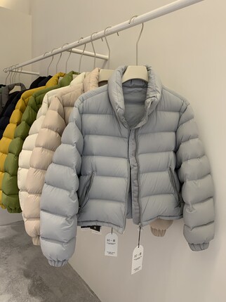 韩国东大门灰蓝色羽绒服女短款立领加厚保暖90白鸭绒面包服外套
