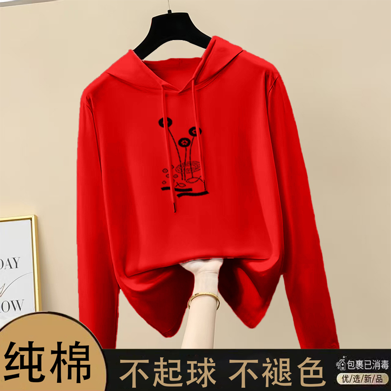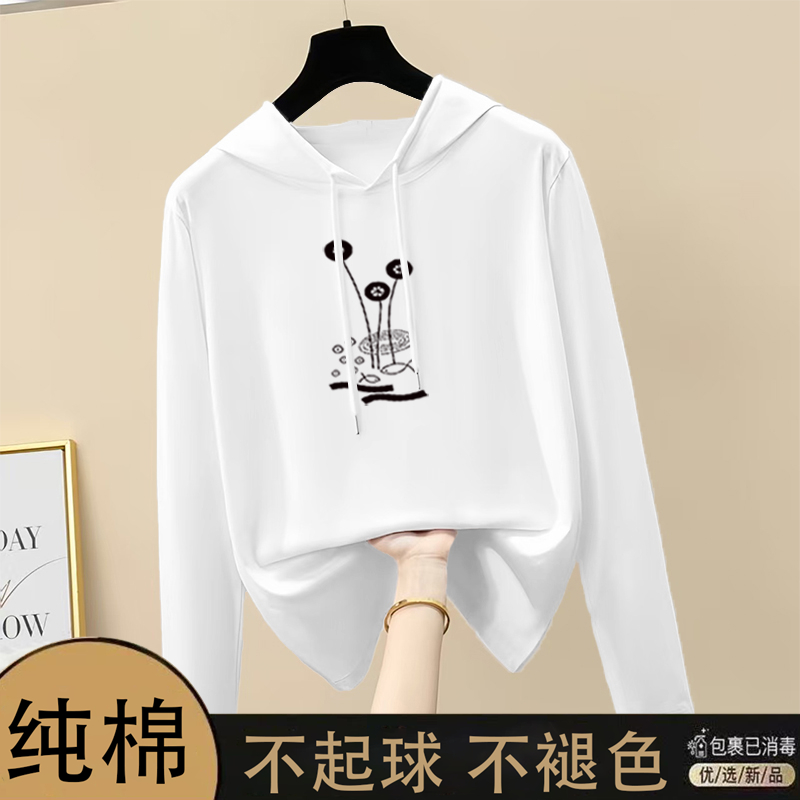 纯棉长袖t恤女2025年新款百搭拼接连帽上衣ins时尚宽松显瘦卫衣潮
