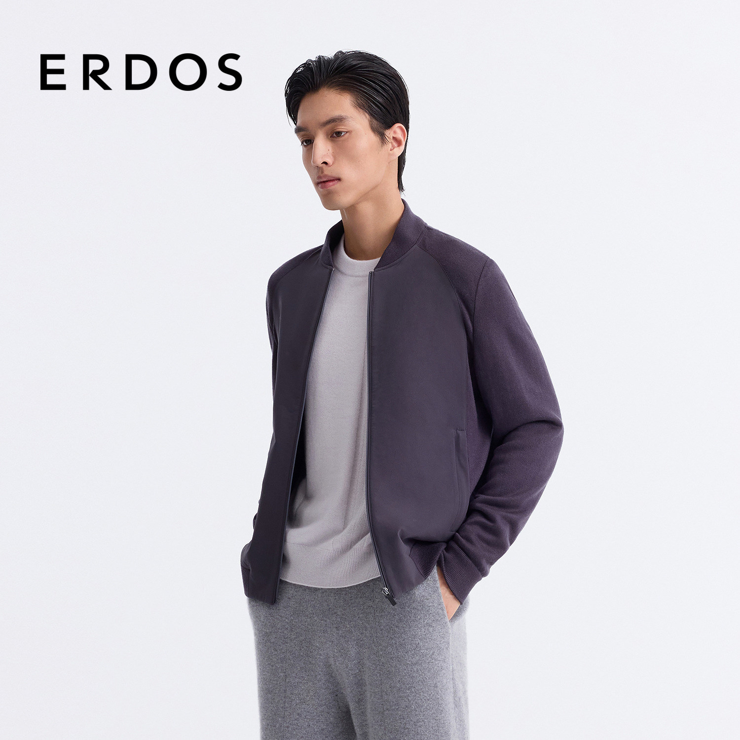 ERDOS 男装飞行员夹克25年春新款蓝灰色短款外套商务休闲轻运动