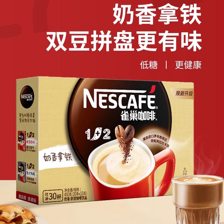 雀巢奶香拿铁咖啡1+2速溶咖啡粉60条学生学习备考熬夜三合一速溶