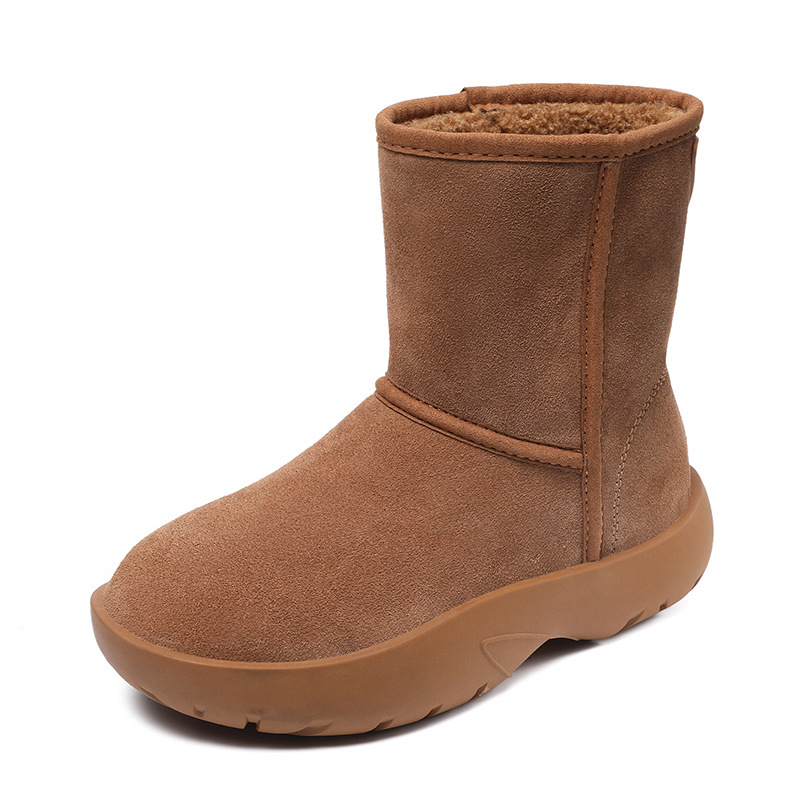 磨砂牛皮雪地靴女2024冬季新款保暖厚底靴棉鞋加绒加厚毛毛短靴子