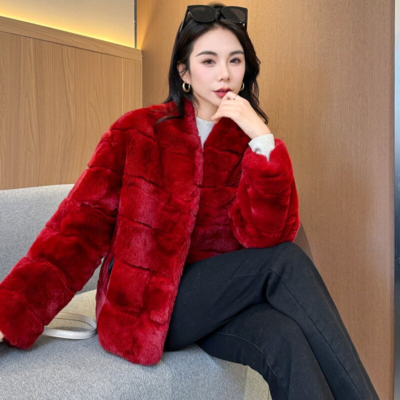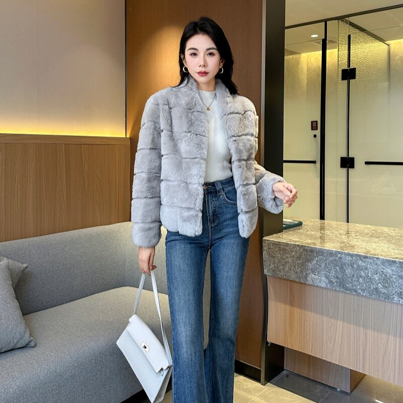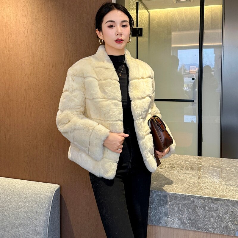 冬新款进口獭兔毛皮草经典短款