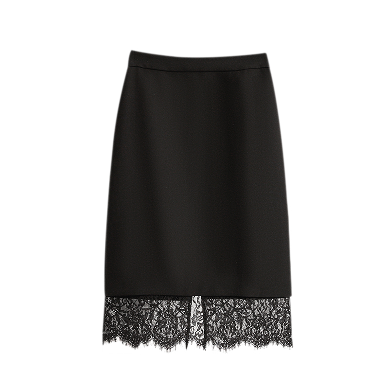 2025秋季新品职场蕾丝拼接开叉包臀裙女胖妹妹时尚洋气减龄半身裙