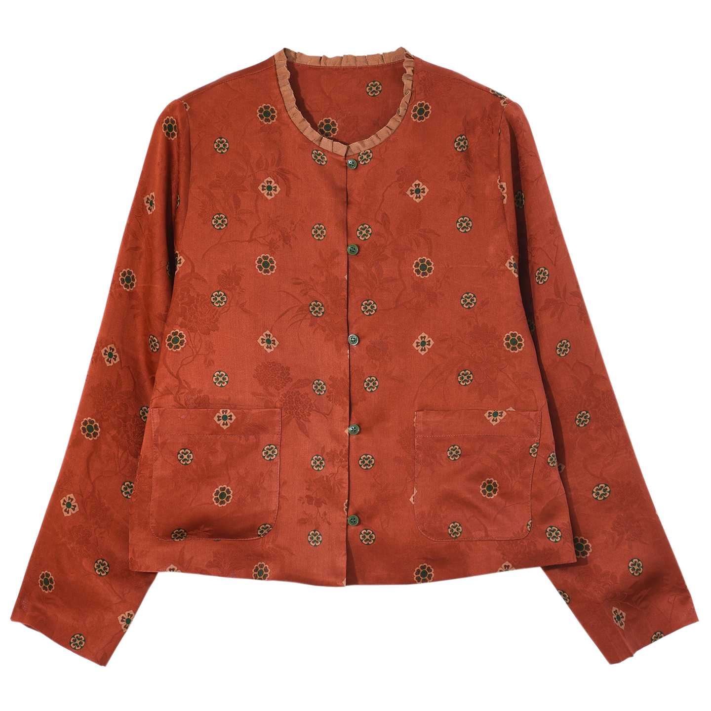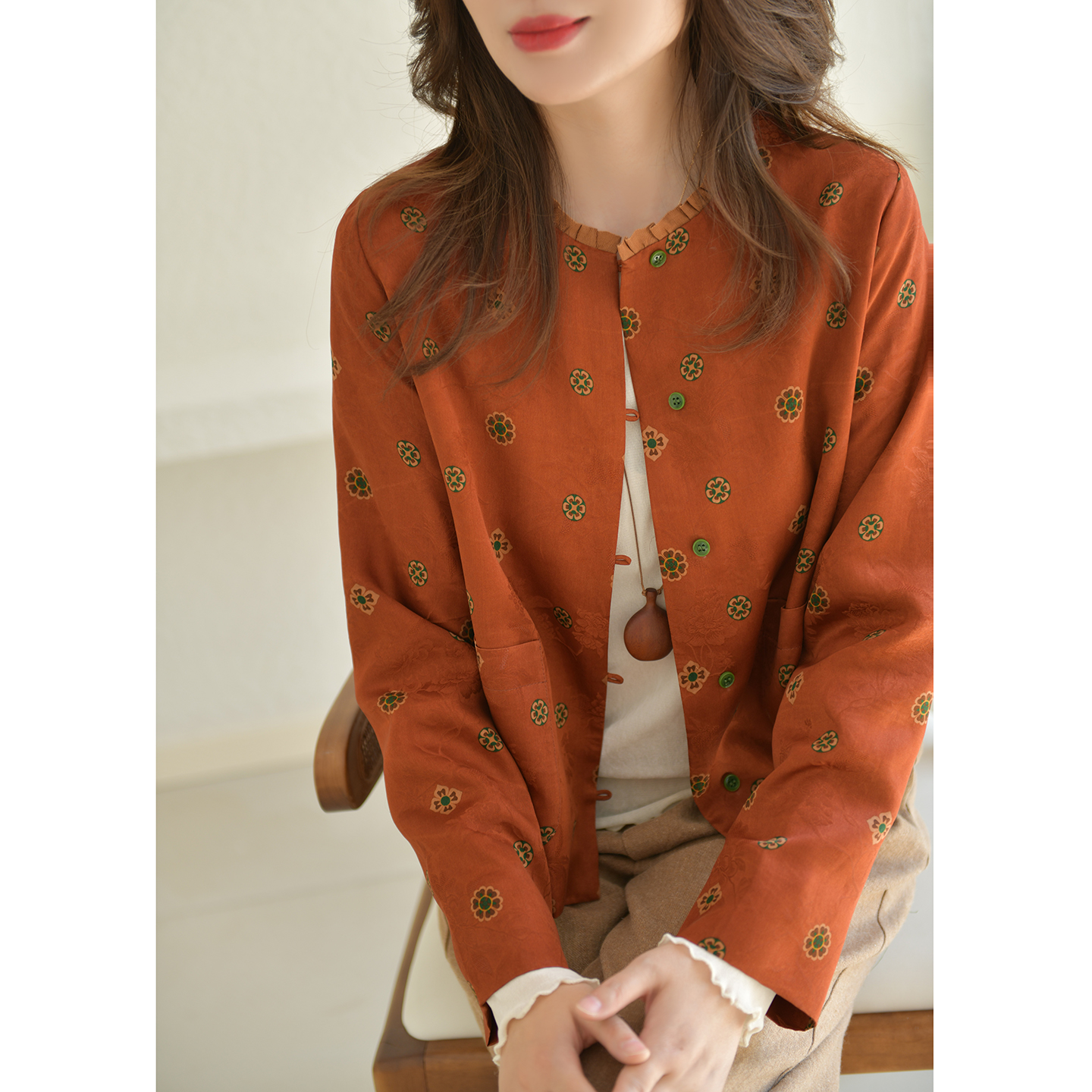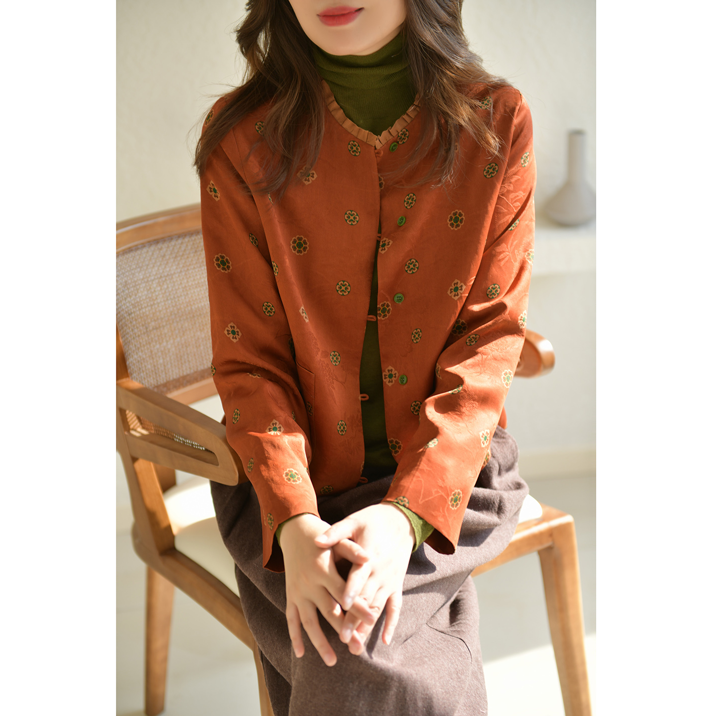 GESGOO重磅红云纱25姆米真丝桑蚕丝圆领上衣新中式提花短款外套女