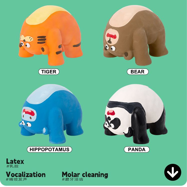 Q-Monster乳胶发声狗玩具下腰系列河马老虎熊猫解闷玩具