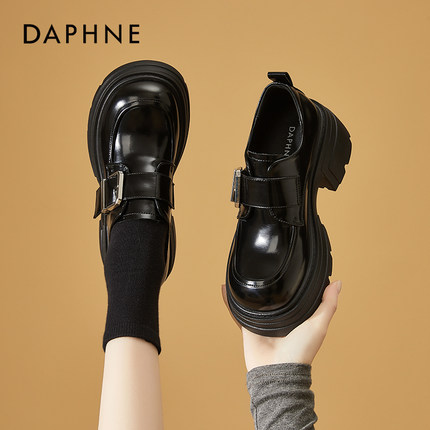 达芙妮厚底乐福鞋英伦黑色小皮鞋