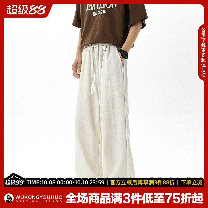 悟空有货夏季薄款速干垂感冰丝休闲裤子男束脚长裤简约宽松直筒裤