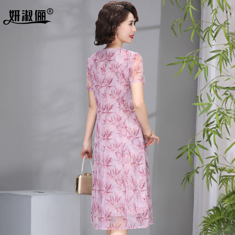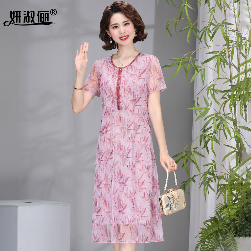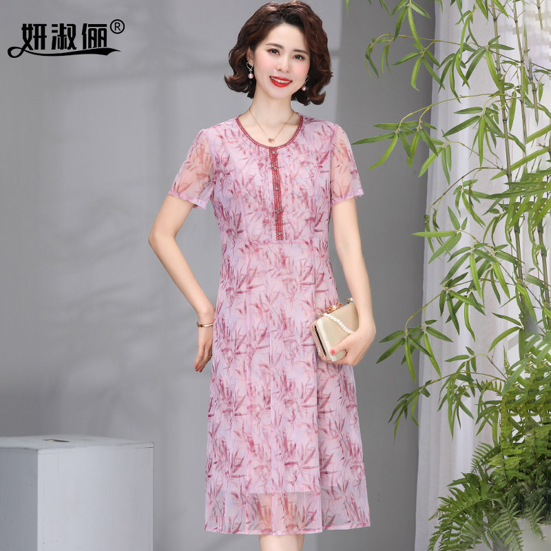 贵夫人妈妈夏装高档洋气连衣裙2025新款中年妇女优雅减龄粉色纱裙
