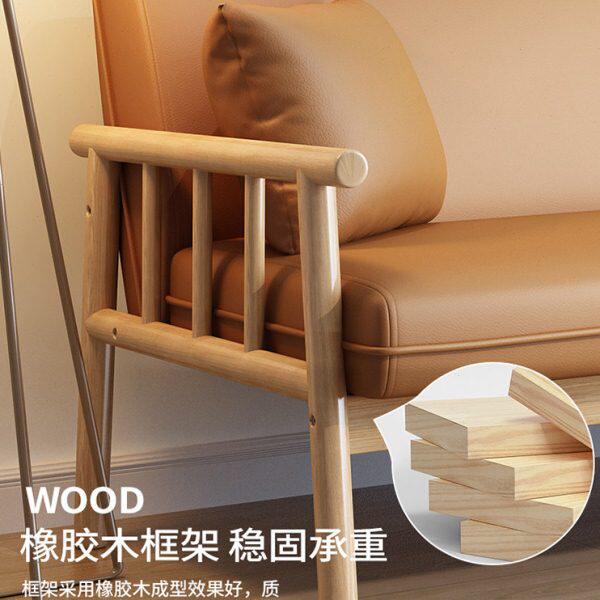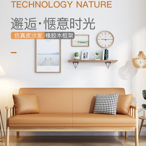 三人沙发皮艺沙发日式双全实木北欧小户型简约现代直排客厅橡胶木