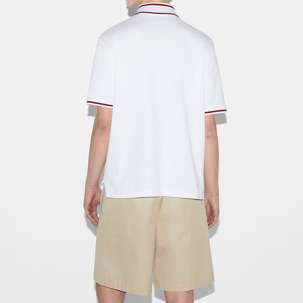 GUCCI/古驰24新款 男士白色棉质蓝红色织带条纹边领POLO衫
