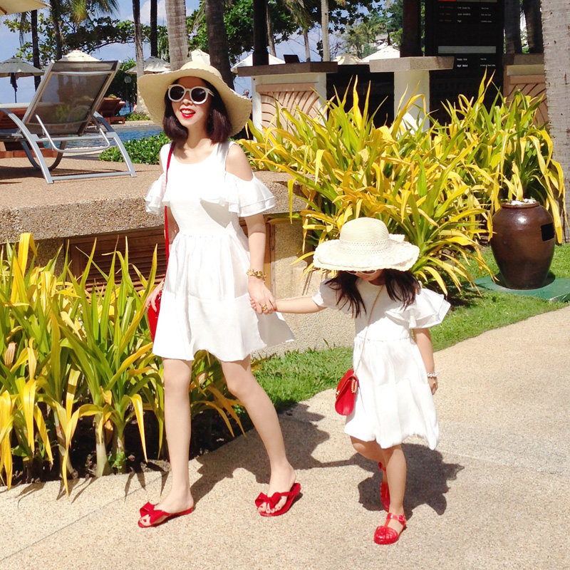 网红亲子装超仙法式气质女童设计感白裙2021夏母女装连衣裙洋气02