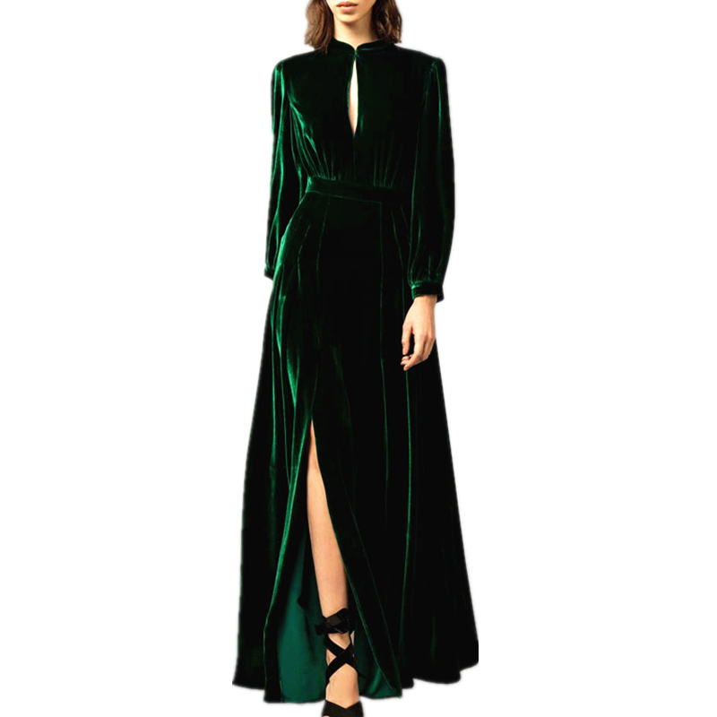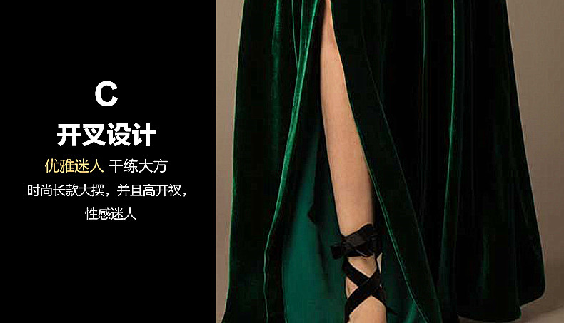 春季新款女装连衣裙金丝绒小立领旗袍复古开叉长裙气质礼服裙精品