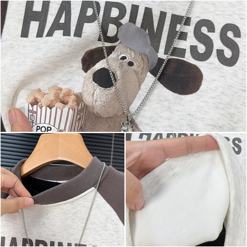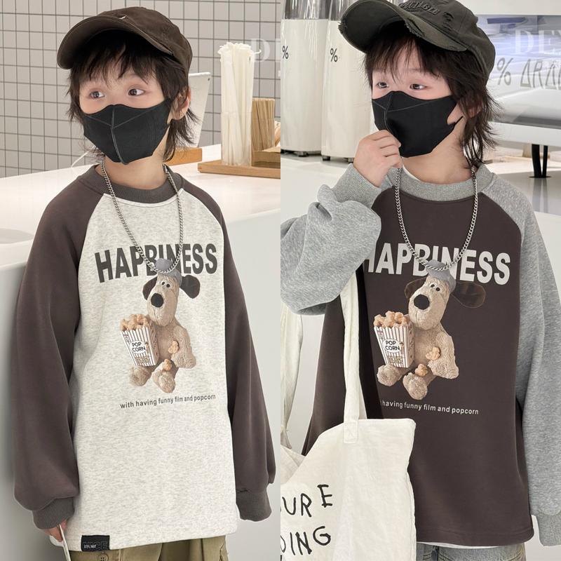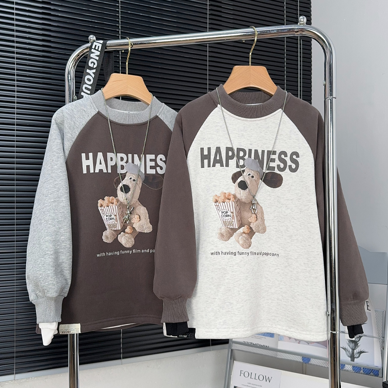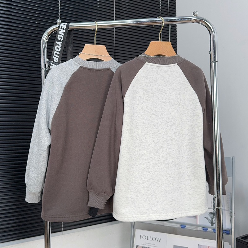 大E小e童装男童插肩袖加绒T恤冬款中大童保暖打底衫儿童卫衣5275