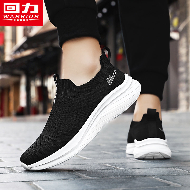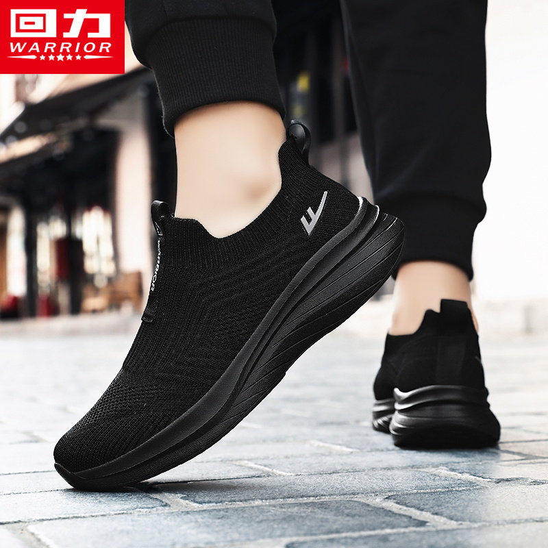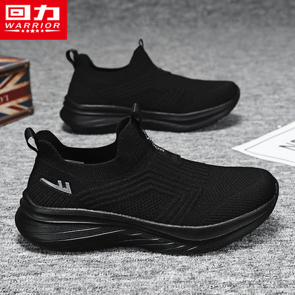 回力一脚蹬男鞋春季飞织网面无鞋带运动网鞋跑步轻便软底大码黑鞋